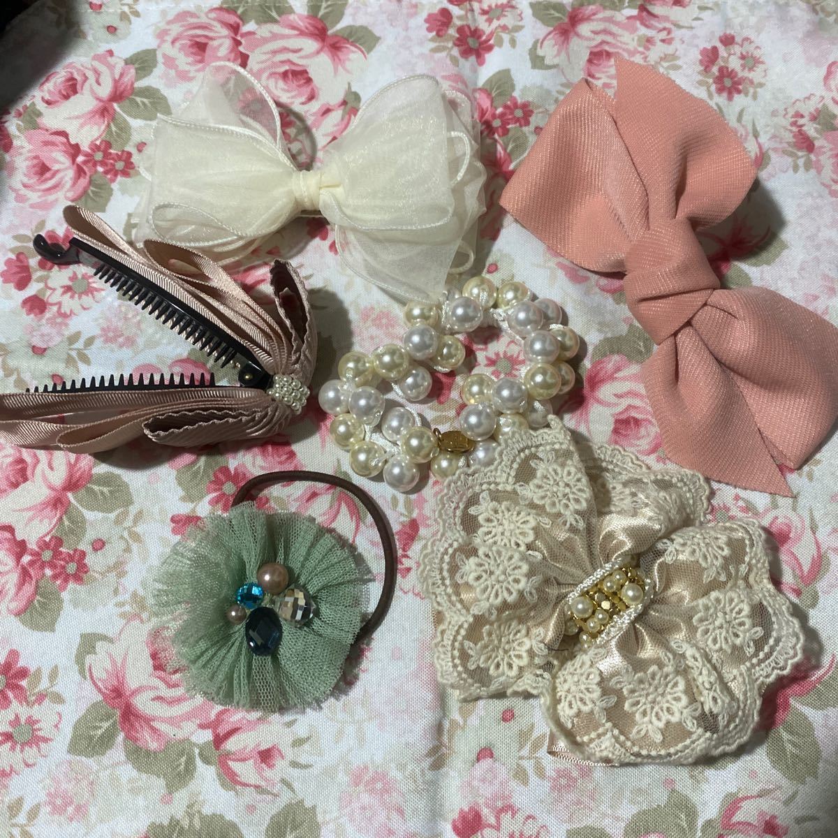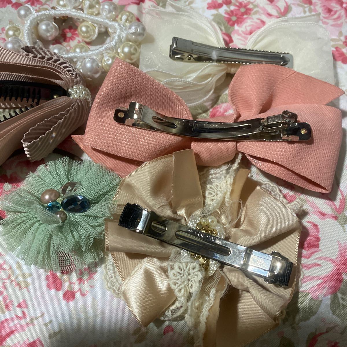 バナナクリップ リボンバレッタ ヘアゴム ヘアクリップ6個セット ビジュー  ピンク ホワイト リボン パール ヘアアクセサリー