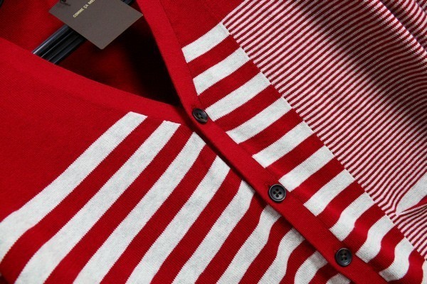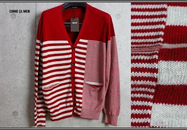 新品 コムサメン コットン パネルボーダー カーディガンL赤薄灰/定価2万円/COMME CA MEN/オールシーズン