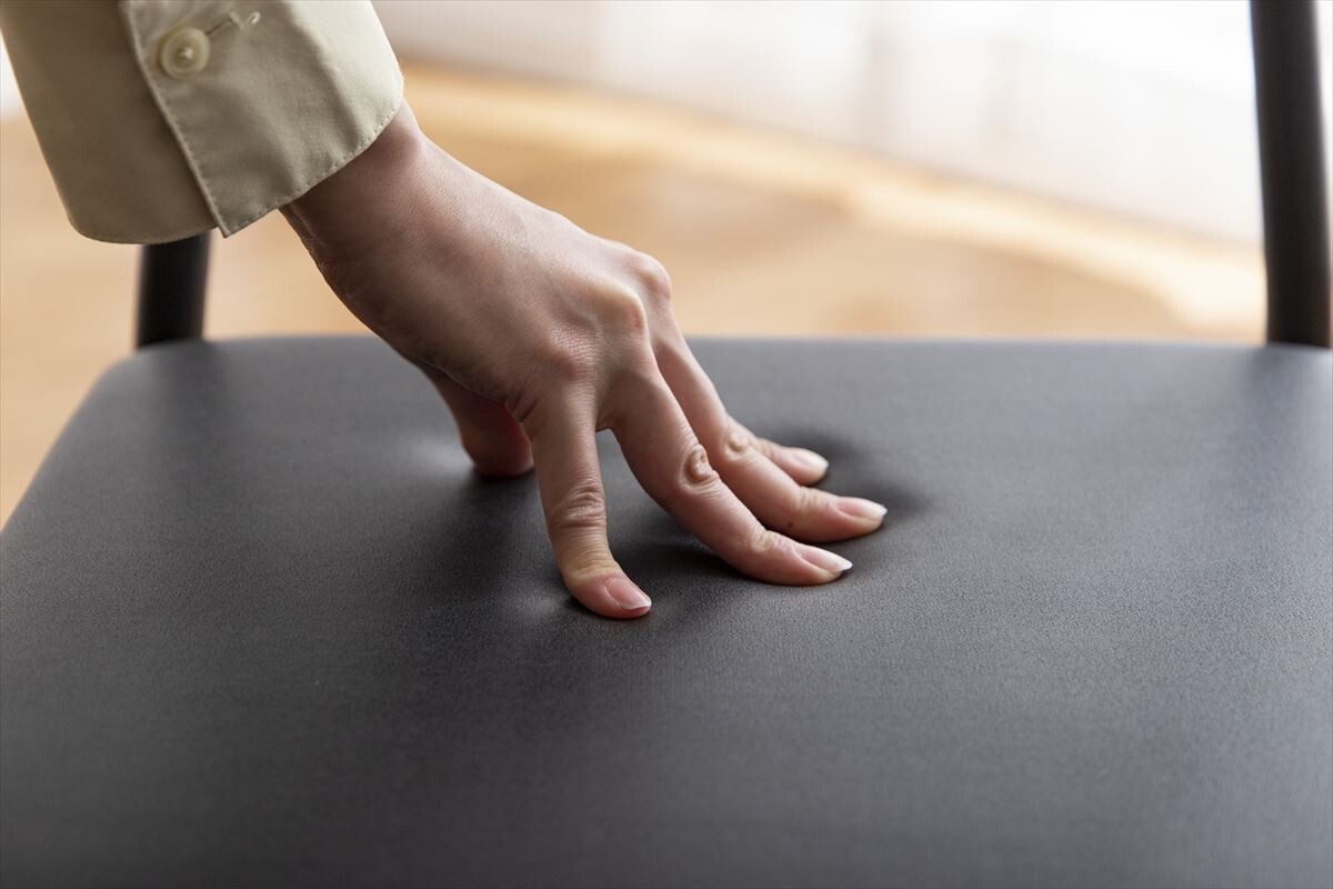 ■素材:合成樹脂化粧繊維板(MDF(PVC加工))、スチール(粉体塗装)PUクッション