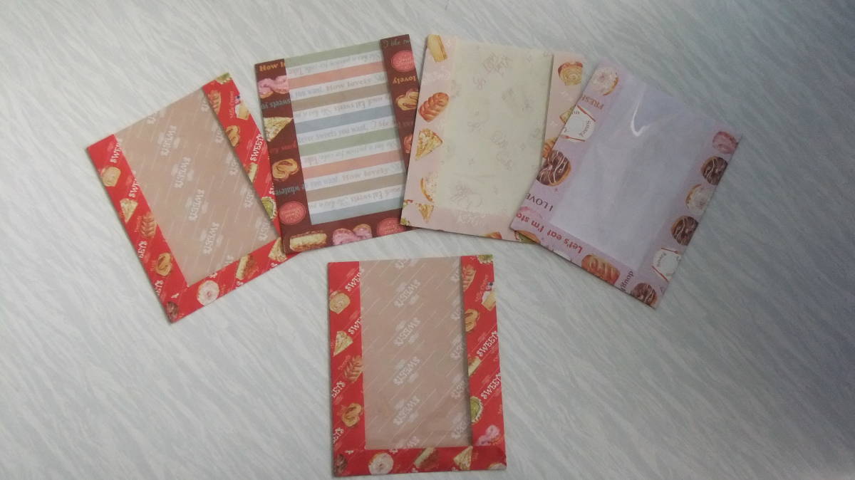 デザインペーパー(折り紙)で窓付き平ラッピング袋を作りました♪