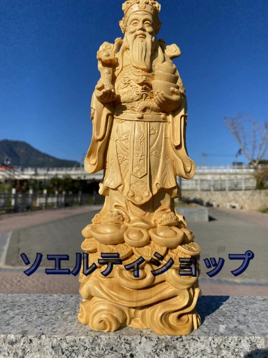 木彫りの仏像 福の神 高級天然ツゲ木彫り 仏壇仏像 神様の置物 木像の置物 玄関 金運グッズ 風水グッズ 七福神置物 精密彫刻 極上品