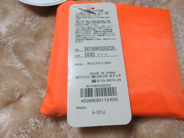 TOCO TOTE スタジオ・ポアック 携帯バッグ エコバッグ 本体36㎝ 35㎝ 持ち手19㎝ 見掛容量約8 耐荷重6㎏ オレンジ色 タグ付 未使用 を出品します。