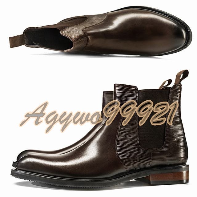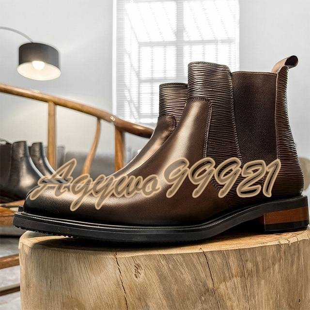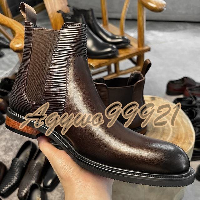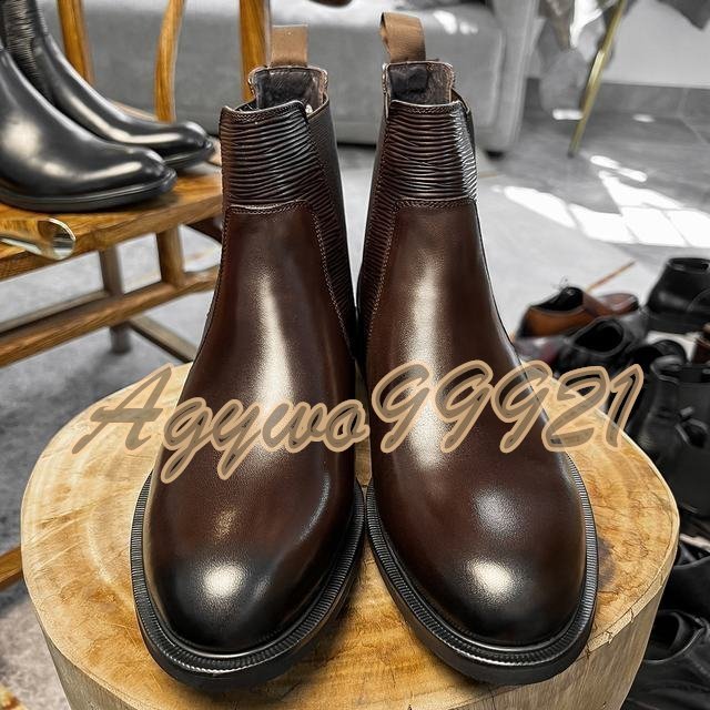 サイドゴアブーツ ブーツ メンズシューズ チェルシーブーツ 牛革 ビジネスシューズ 本革 革靴 フォーマル 紳士靴 ブラウン 24.5cm