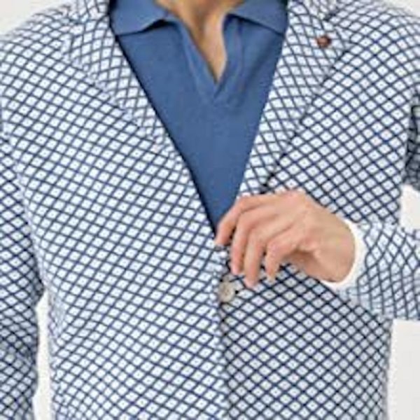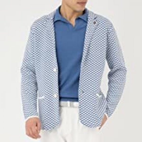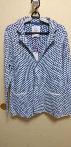 《未使用》 JWO ジェイダブリューオー ブークレヤーンジャガード ニットジャケット 041-4181211 メンズ ブルー M 48 《アウトレット》TAW5