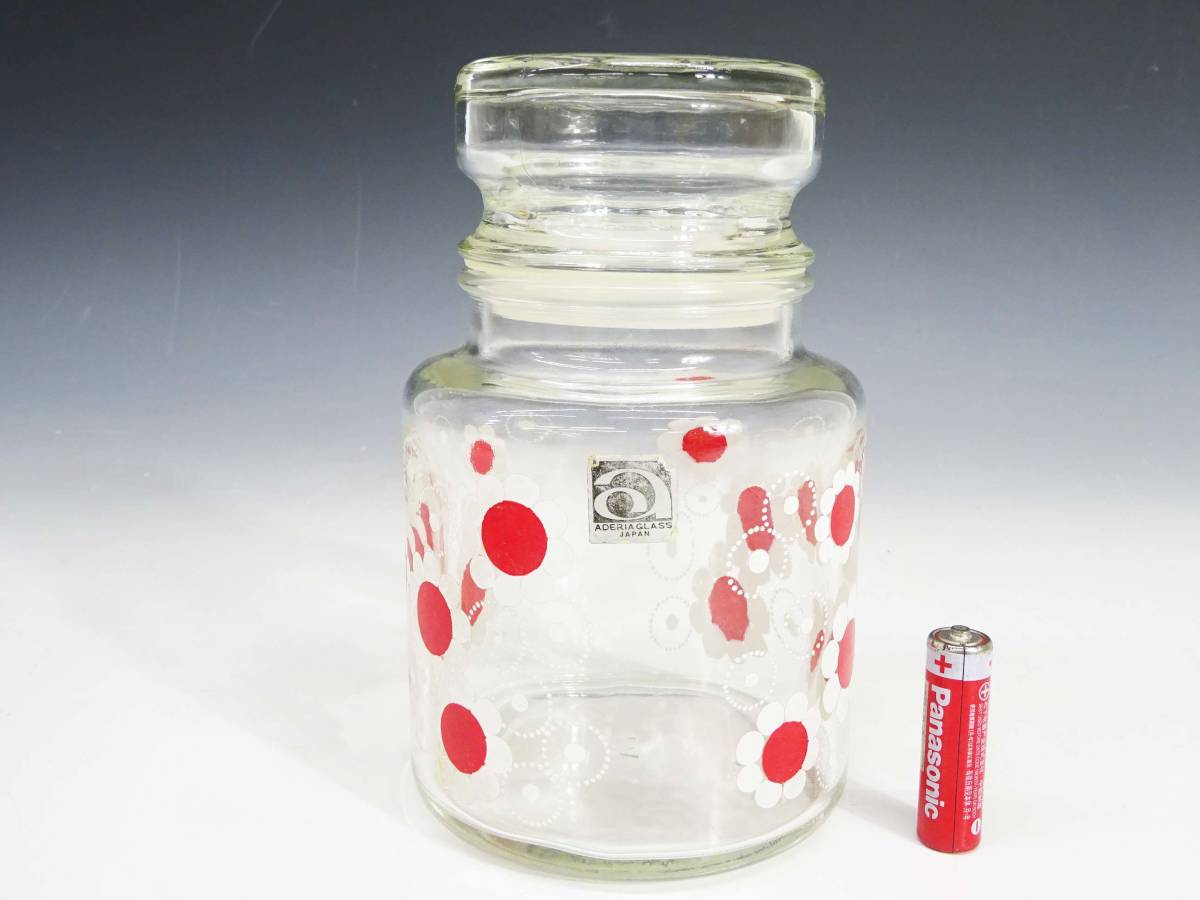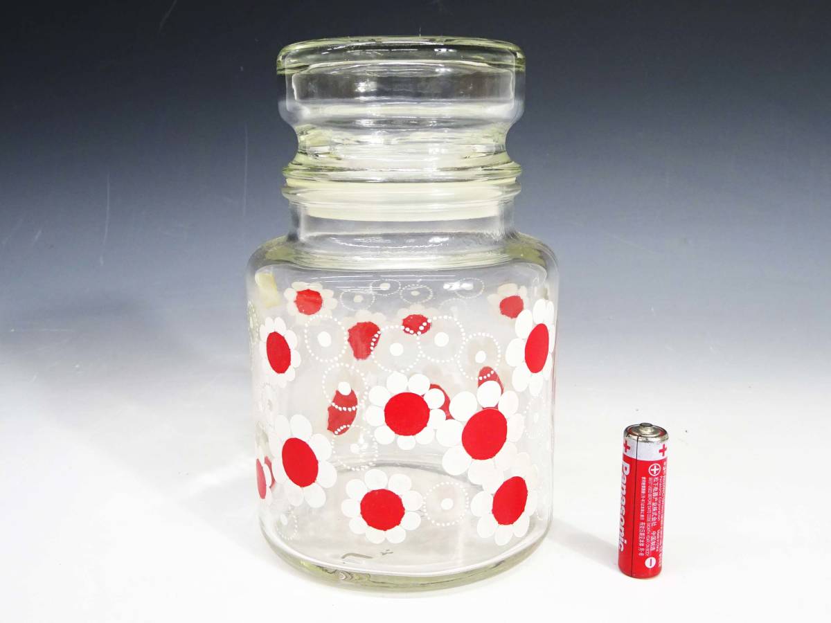 ◆(TH) 昭和レトロポップ雑貨 ガラス製 密封容器 アデリアグラス キャンディポット キャニスター 花柄模様 保存容器 キッチン雑貨