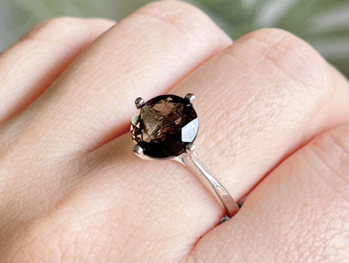 天然石逸品スモーキークォーツ (茶水晶 )リングのサイズ約:直径9.2mm*厚さ7.2mm;