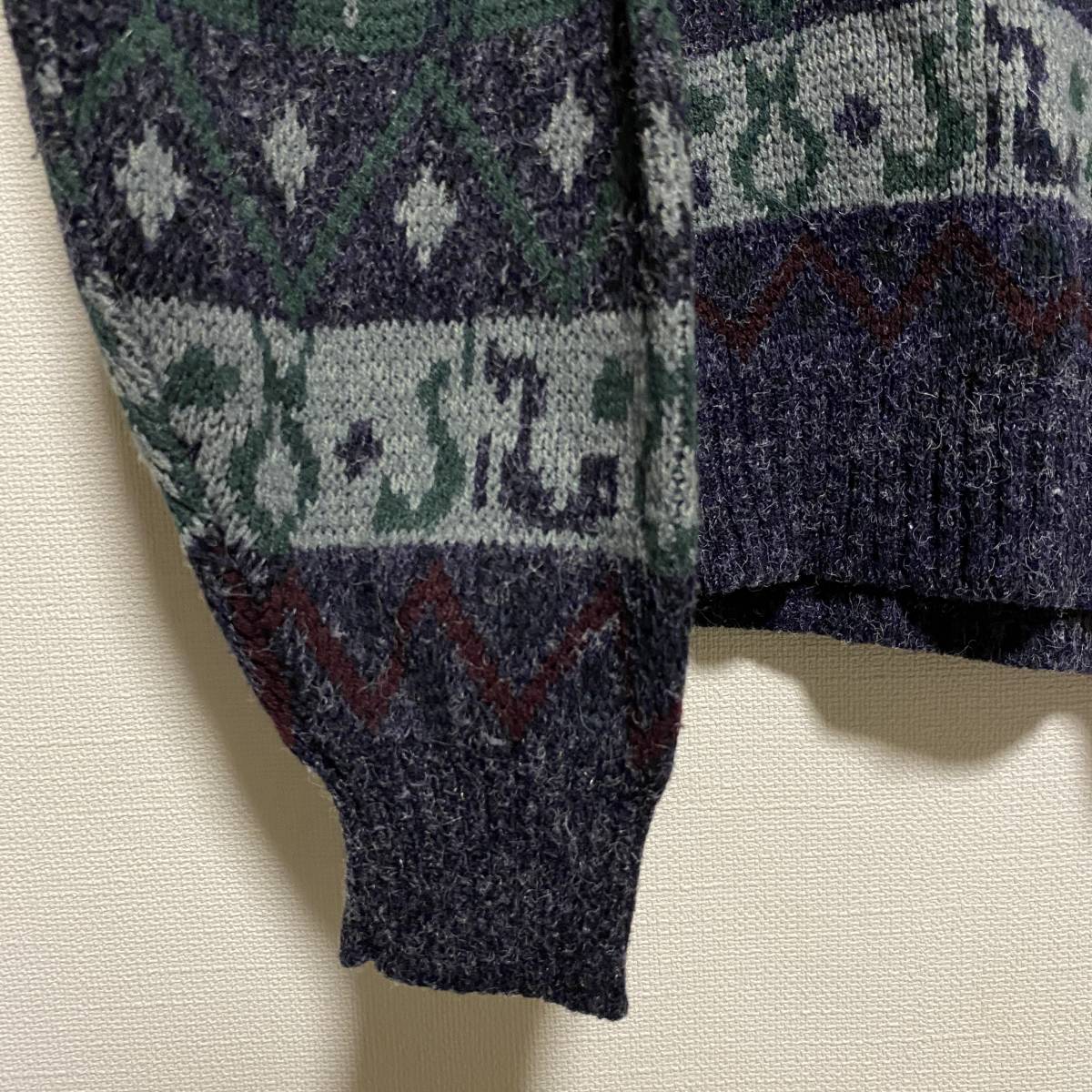 アメリカ古着 ニット セーター 総柄 デザインニット ヴィンテージ クルーネック Mサイズ アクリル 【P647】