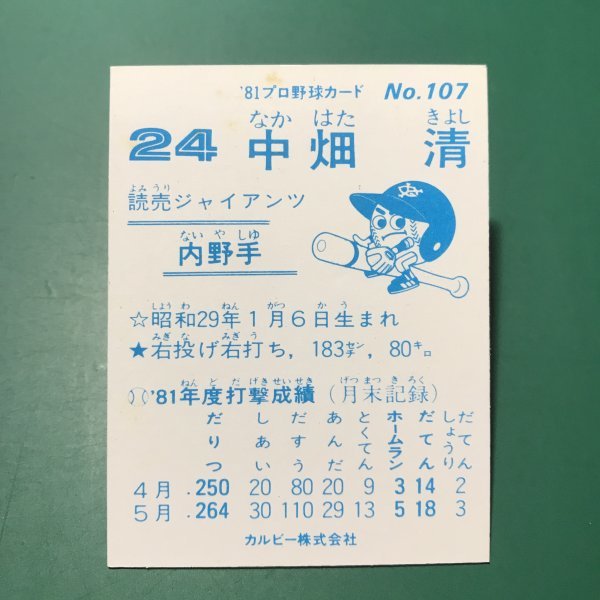 1981年 カルビー プロ野球カード 81年 107番 巨人 中畑 【管C08】