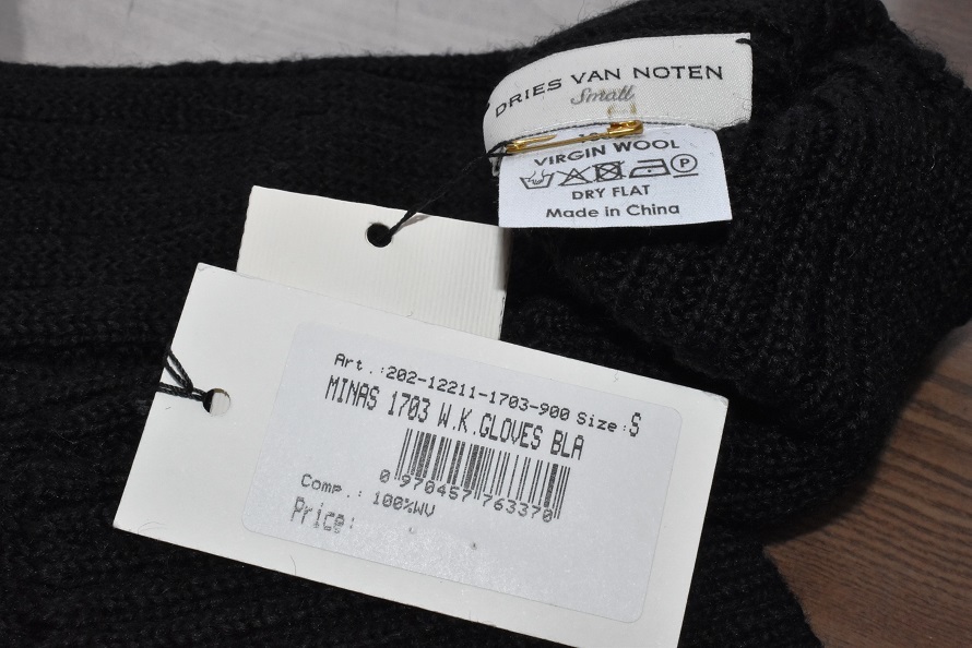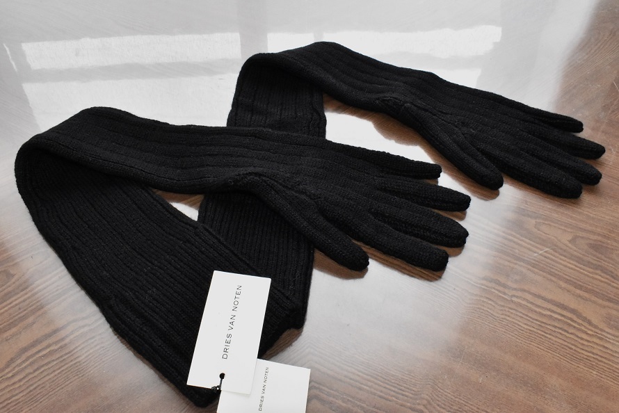 DRIES VAN NOTEN ドリスヴァンノッテン MINAS 1703 W.K. GLOVES ウール ニット アームカバー / アームグローブ 黒 サイズS 未使用