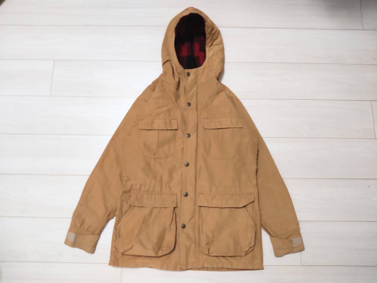 アメリカ、SIERRA DESIGNS(シェラデザイン)社のマウンテンパーカーです おなじみのアウトドアブランドです ■代理店は株式会社ランドマークになります ■サイズはUSAサイズでXXS 日本サイズでXSになります 素人採寸ですが 身幅(脇の下で)53cm 身丈(背面側で)72cm 裄丈77cmありました ■アメリカ製です ■表地はコットン60% ナイロン40%です(60/40クロス) シェラデザインでは定番となっております ■裏地にはウール地が張り合わせてあります 赤と黒のブロックチェック柄となっております ■表地の色はやや濃いめのタン系になります ■正面はボタンとジッパーです ■ポケットは正面左右に上下それぞれと背中にも大きいものがあります ■フードとウエストはドローコードで締めることが出来ます ■ユーズドになりますので使用感(薄汚れ等)はあります またポケットと袖のベルクロにほつれがありますのでよろしくお願いします(写真7.8.9.10枚目をご参照下さい)■シェラデザインのファンの方いかがでしょうか 是非よろしくお願い致します