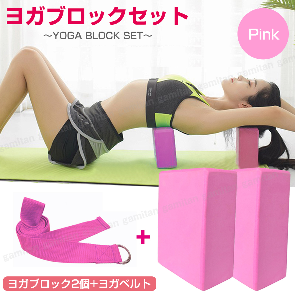 ヨガブロック2個+ヨガ補助ベルト1点のお得なセットです