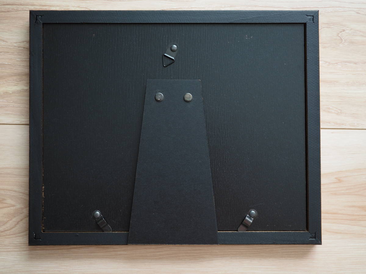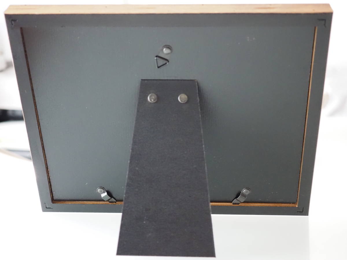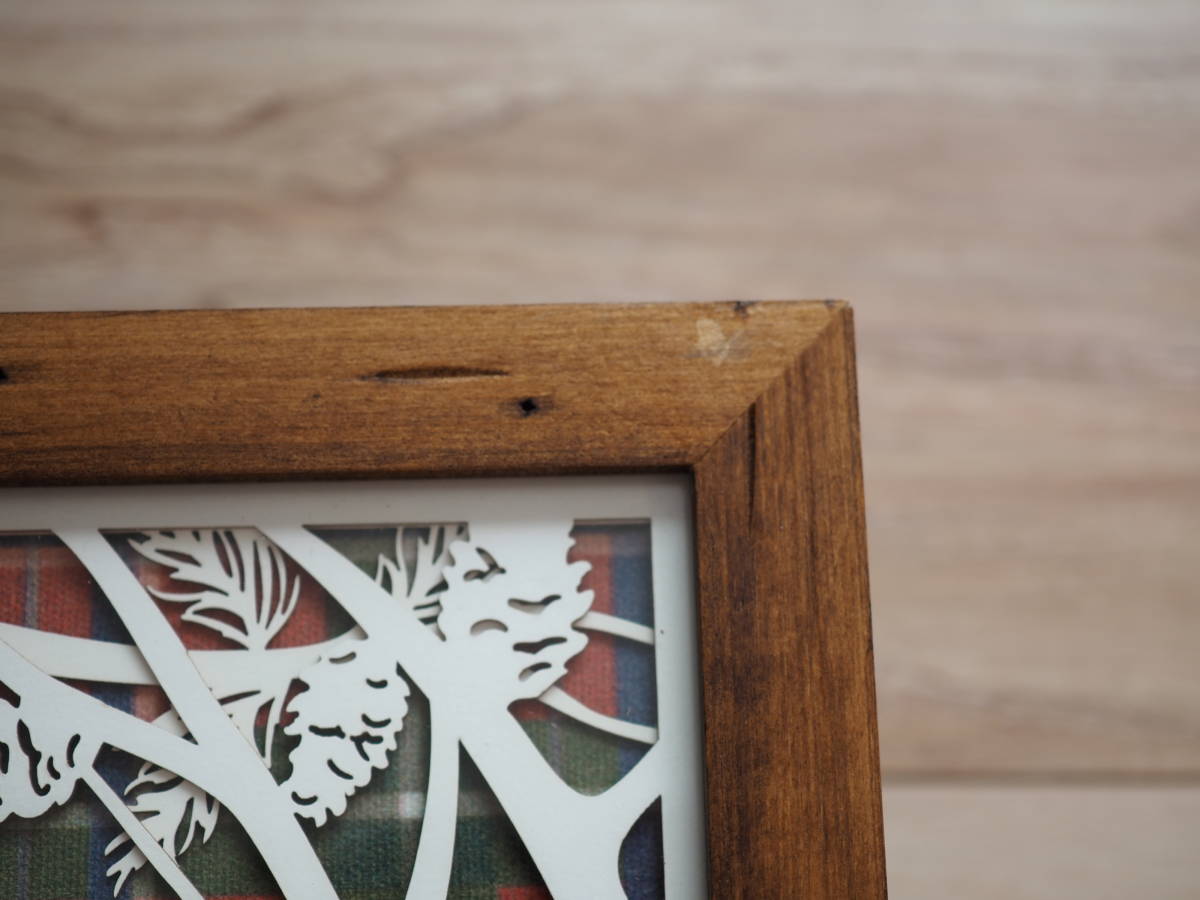 外枠は木製、正面はガラスです。デコパージュのような飾りマットのほか、チェック地のマットも付いています。