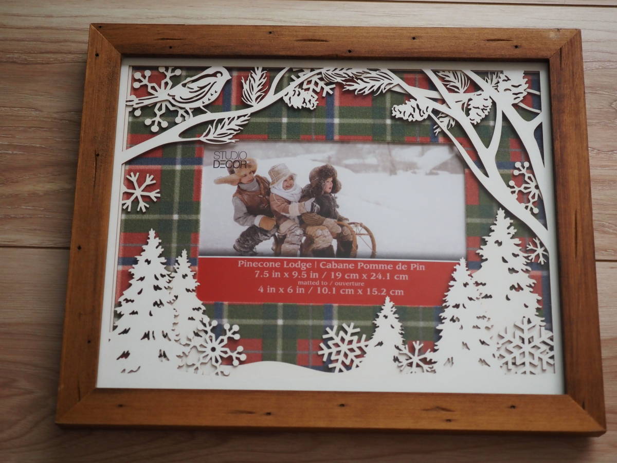 【STUDIO DECOR】未使用 木製 フォトフレーム クリスマス 冬 モチーフ 掛け/立て飾り 写真たて デコレーション 壁掛け デコパージュ 額縁