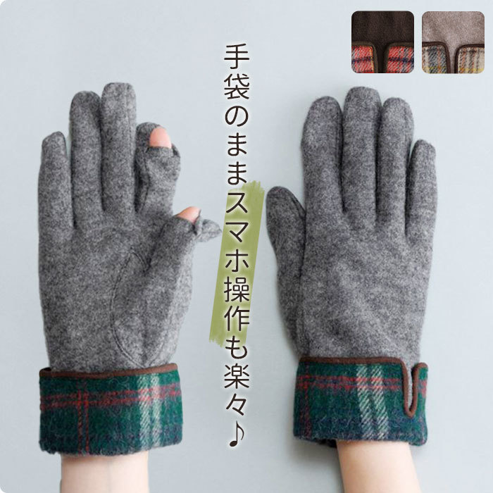 商品説明 | ・・タータンチェックをカフスのように付けた大人な雰囲気のグローブ。 ・裏地には、あたたかくなめらかな肌触りのマイクロボアを使用。 ・指先のスリットから指が出せるのでスマホ操作も楽々。 |
