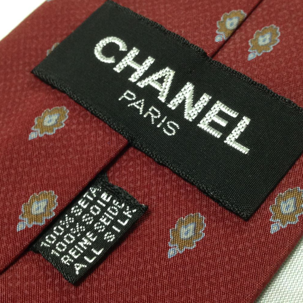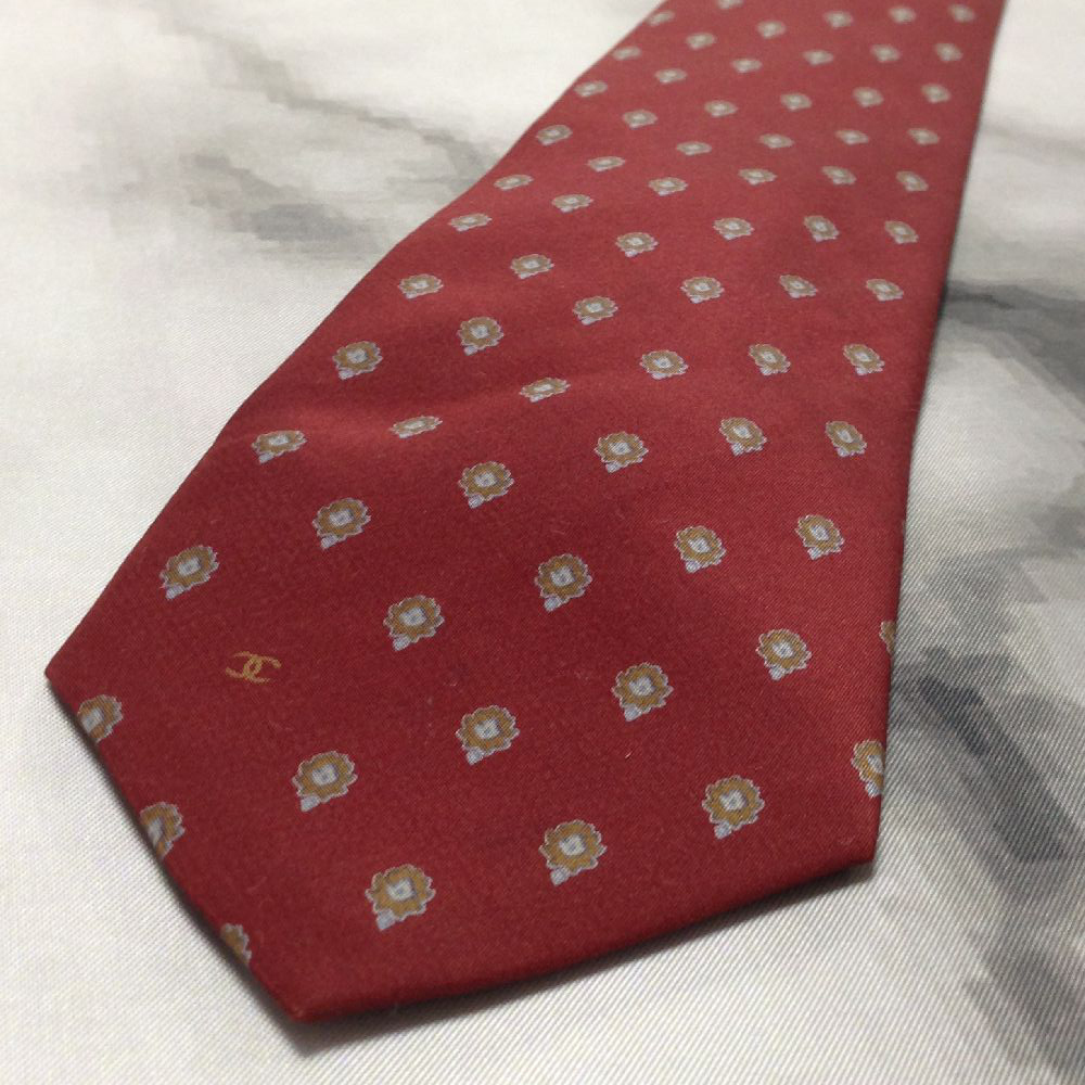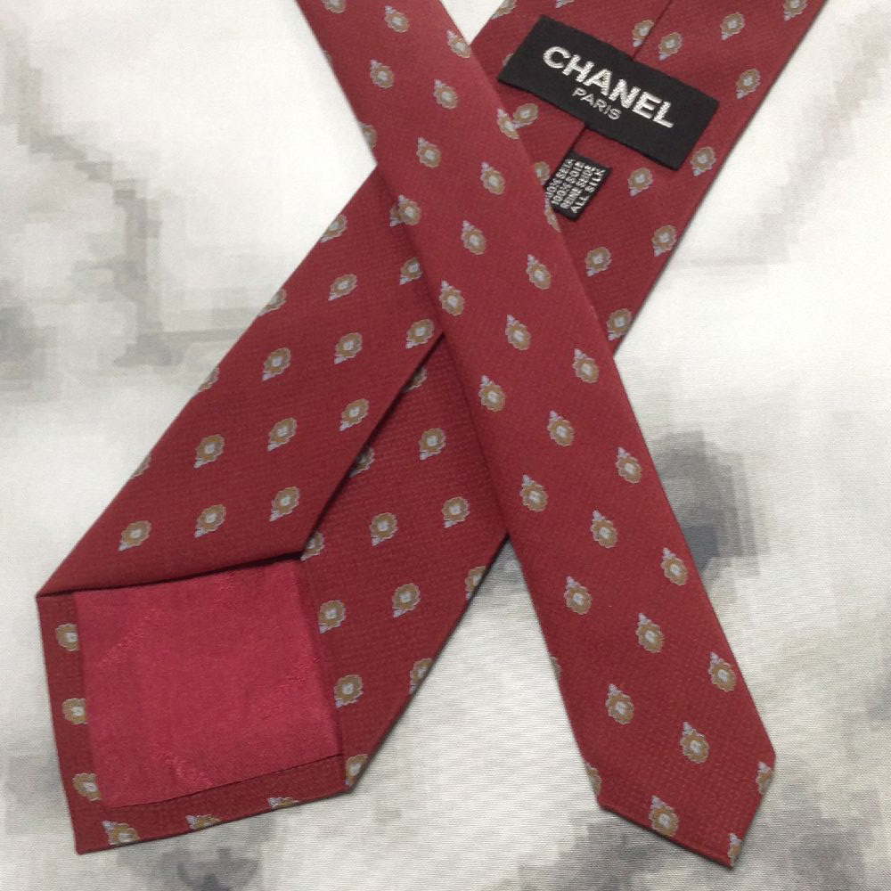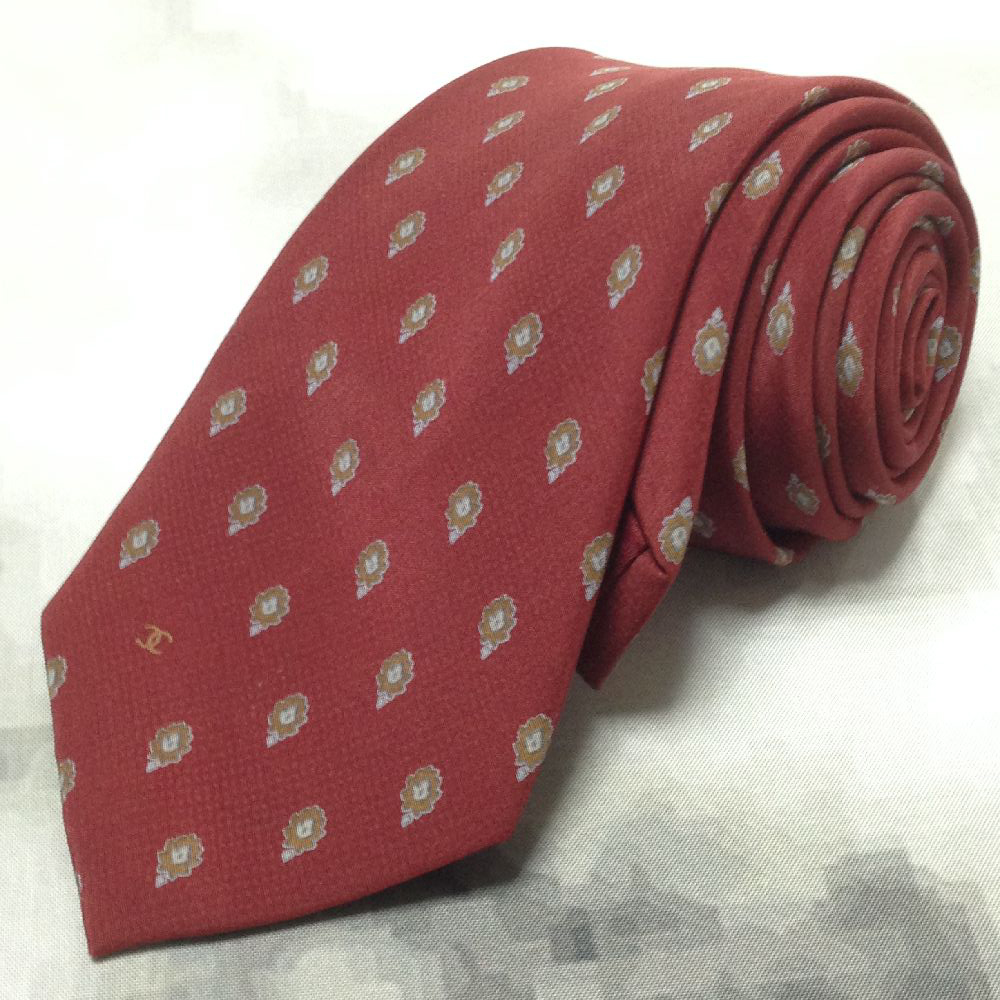 大人な色合いでオシャレ! シャネル CHANEL 微光沢 ネクタイ シルク100% パターン柄 ワインレッド系 赤系 Z-008280 | |