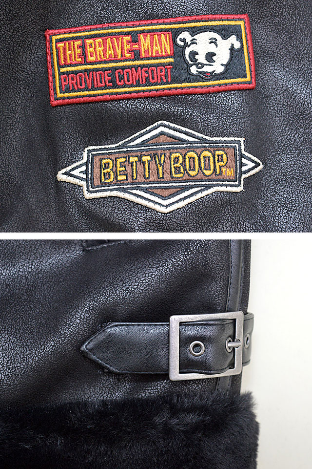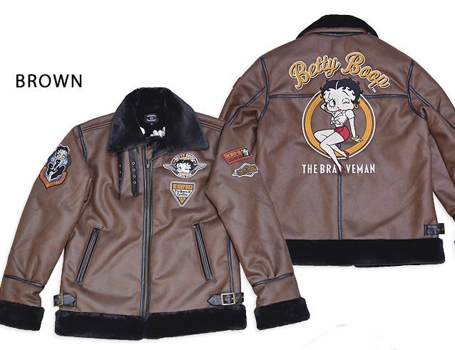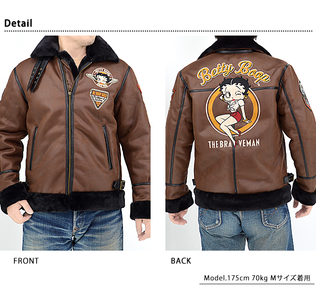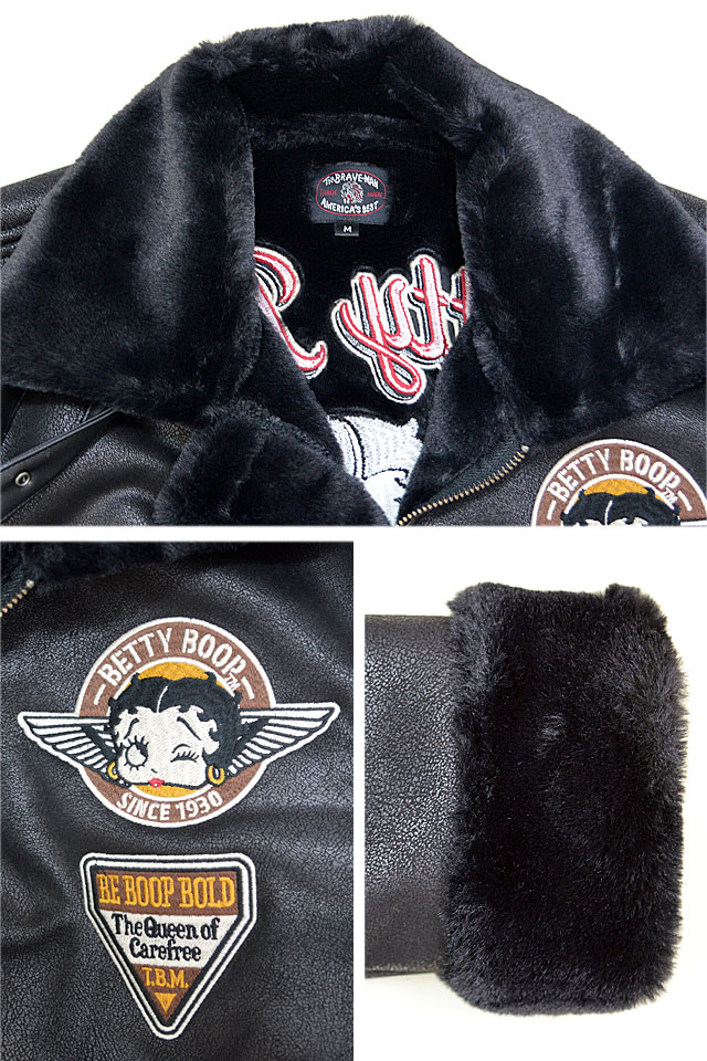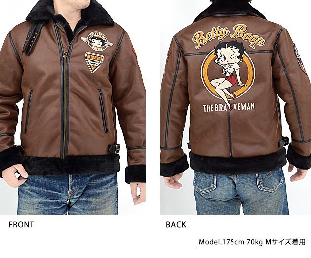 BR×BETTYコラボ ロゴ刺繍裏ファーボンディングB-3フライトジャケット◆The BRAVE-MAN ブラウンLサイズ BBB-2361 ブレイブマン ベティー