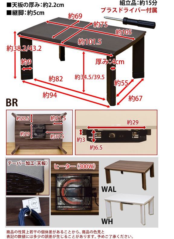 SKBKT105 MD こたつ ホワイト 105 テーブル 継脚式