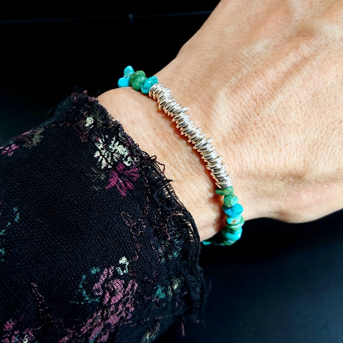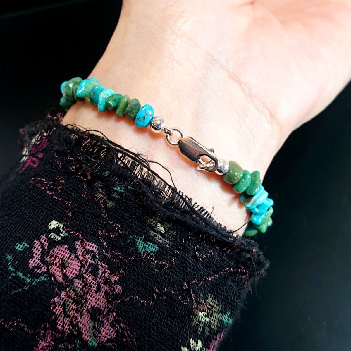 ブルーやグリーンのさざれ石を繋げた天然ターコイズのブレスレット☆