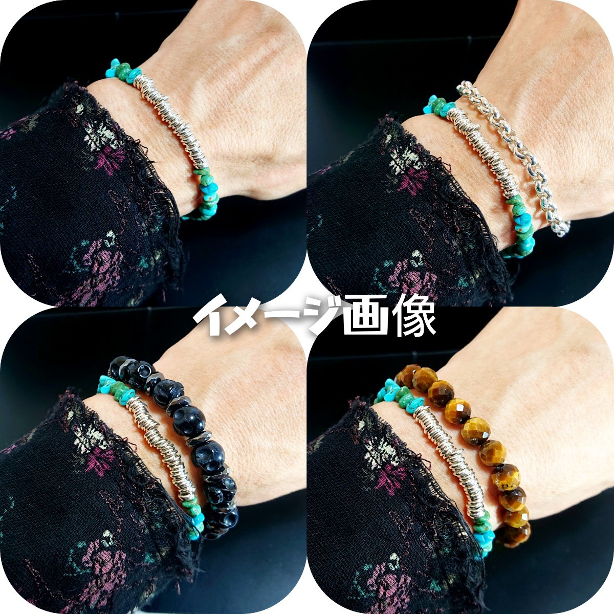 お手持ちの数珠ブレスやシンプルなブレスと重ねても素敵です☆