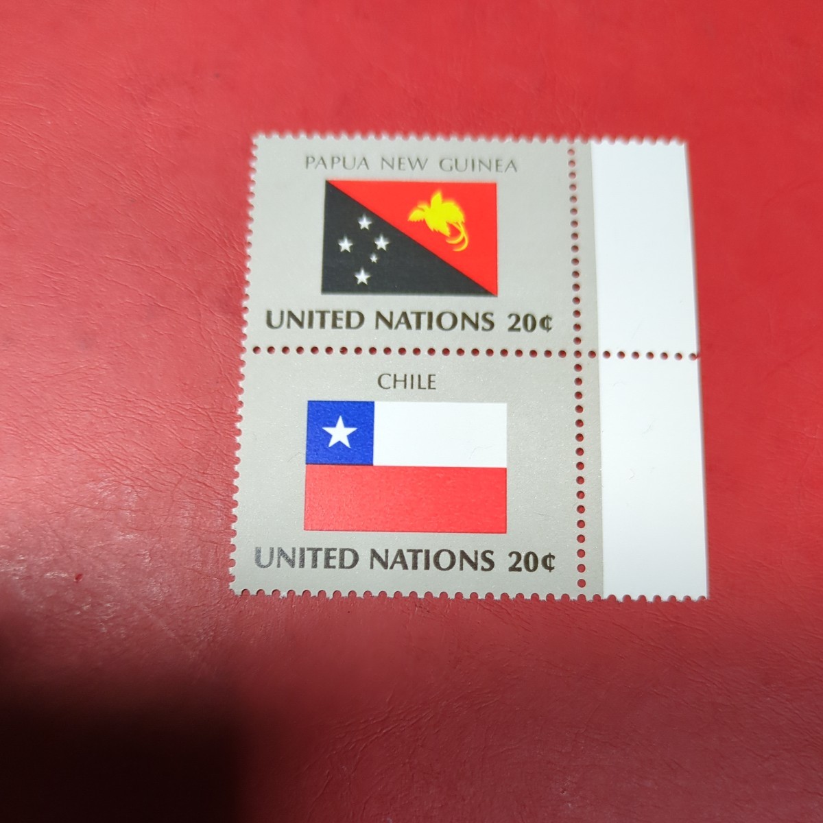 国連切手国旗シリーズより「パプアニューギニアとチリ」 未使用  1980年年代  2種