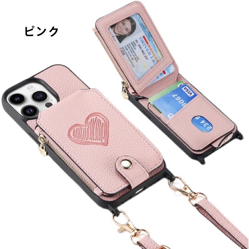 iPhone 15 ケース iPhone15 カバー 6.1インチ スマートフォンカバー カード収納 ショルダーバッグカバー ファスナー LOVE ストラップ付き | |||