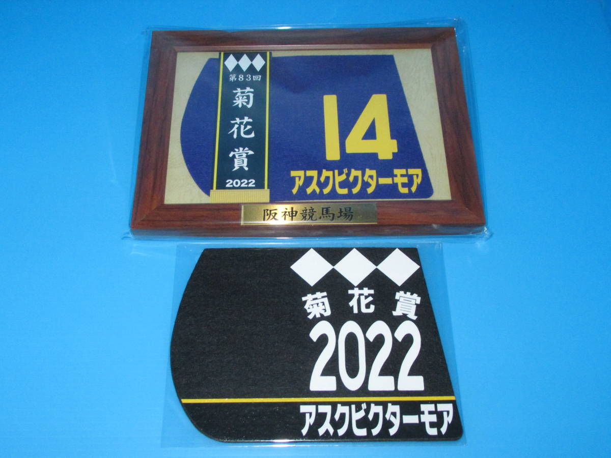 匿名送料無料 ★第83回 菊花賞 GⅠ優勝 アスクビクターモア 額入り優勝レイ付ゼッケンコースター&勝負服コースター 阪神競馬場 ☆即決!