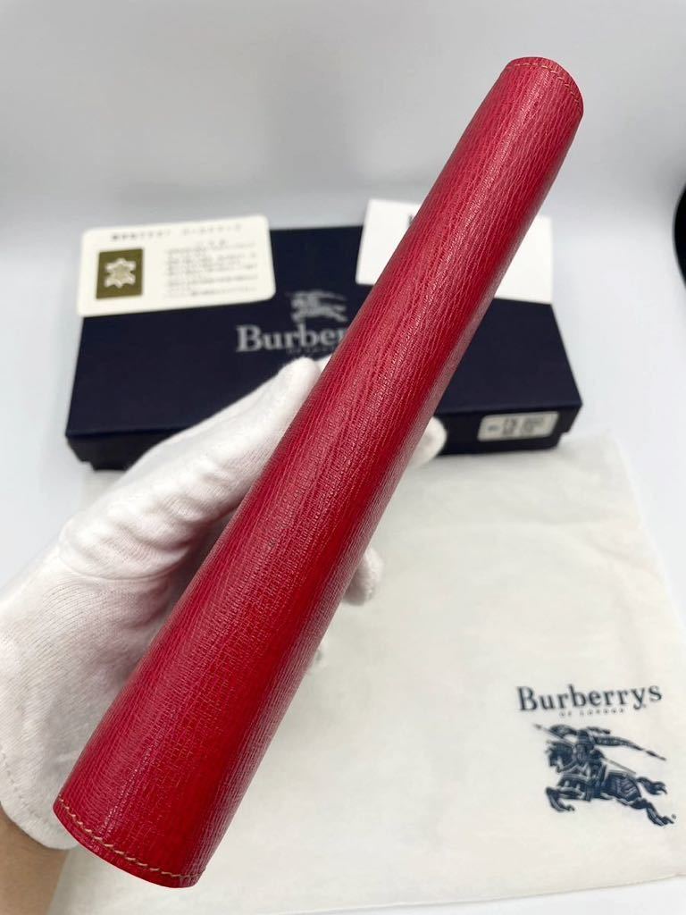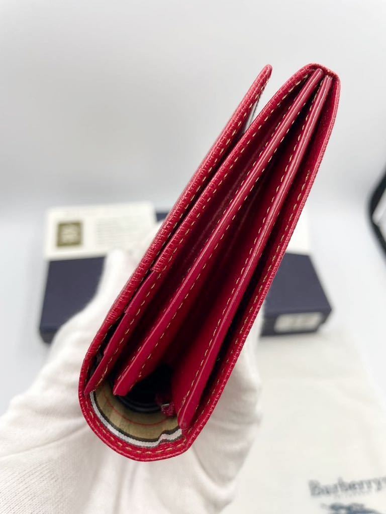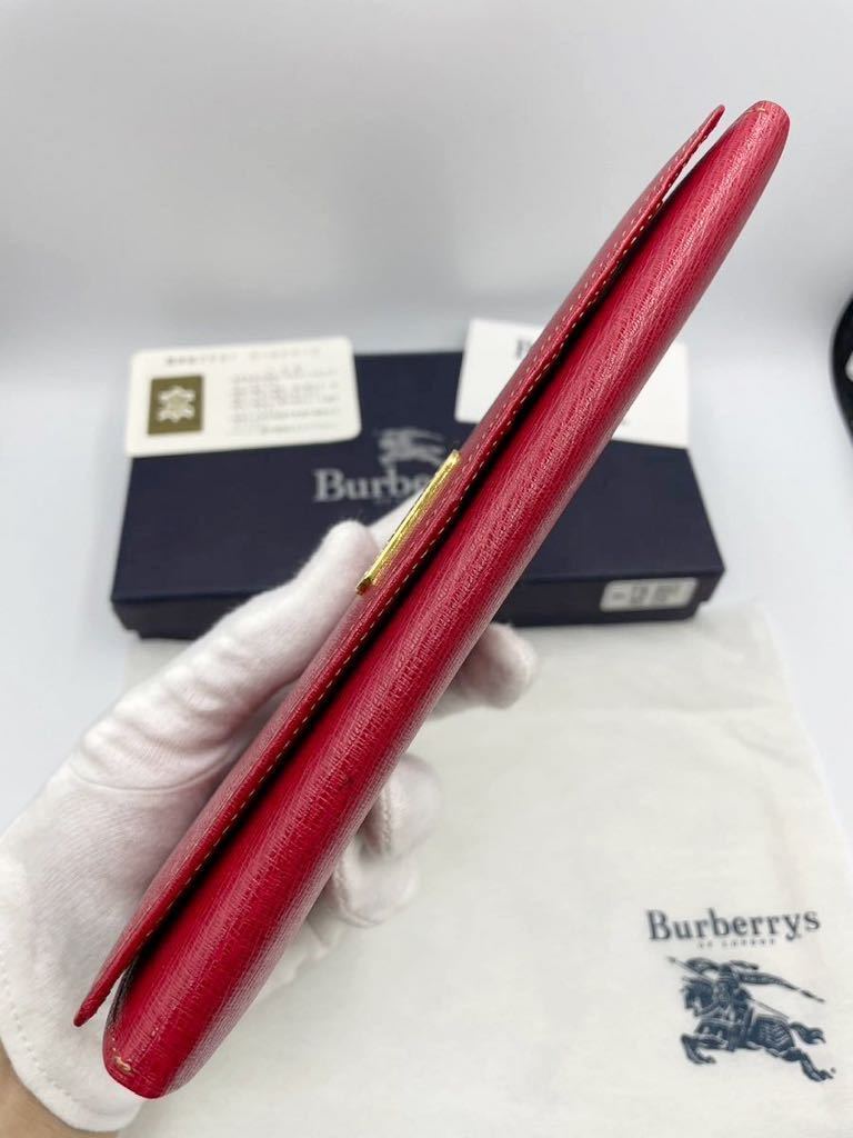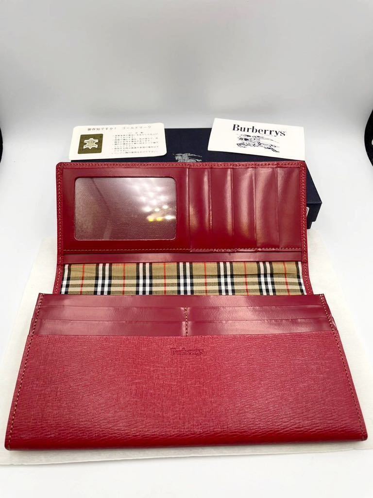 未使用品 バーバリー 長財布 レッド レザー 小銭入れ付き メンズ レディース 二つ折り財布 カードケース コインケース