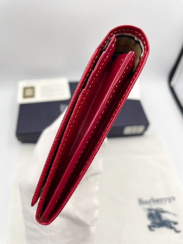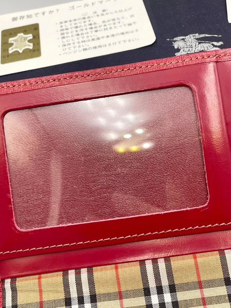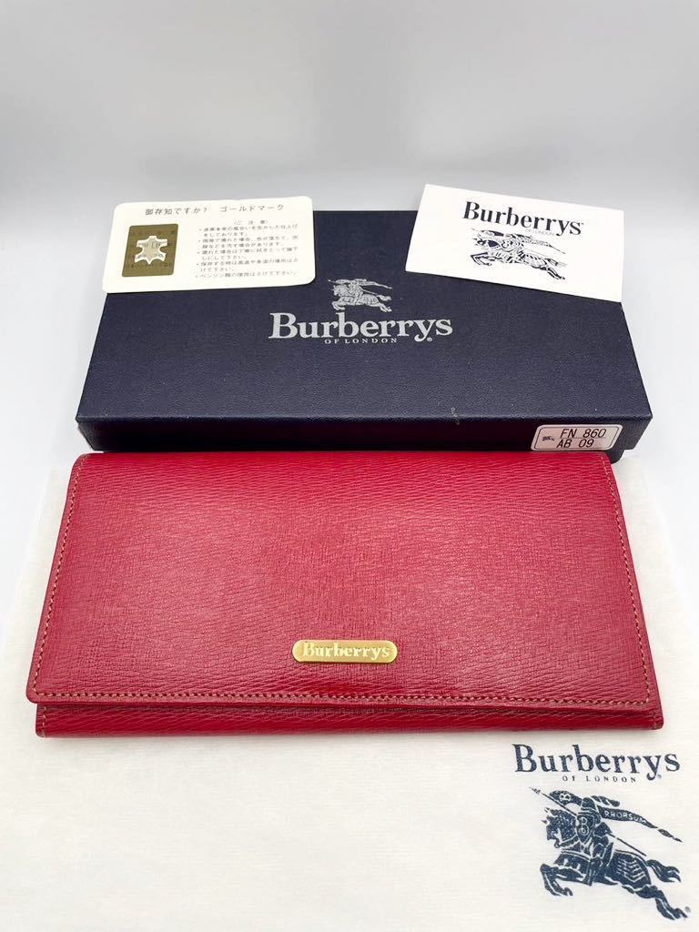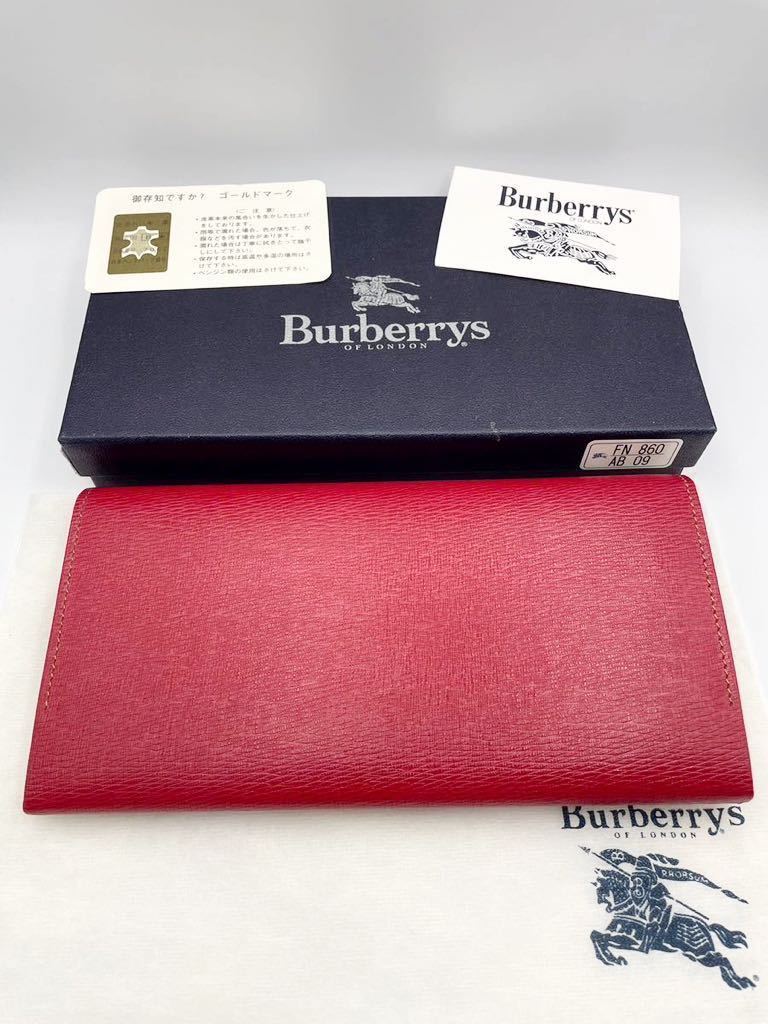 未使用品 バーバリー 長財布 レッド レザー 小銭入れ付き メンズ レディース 二つ折り財布 カードケース コインケース