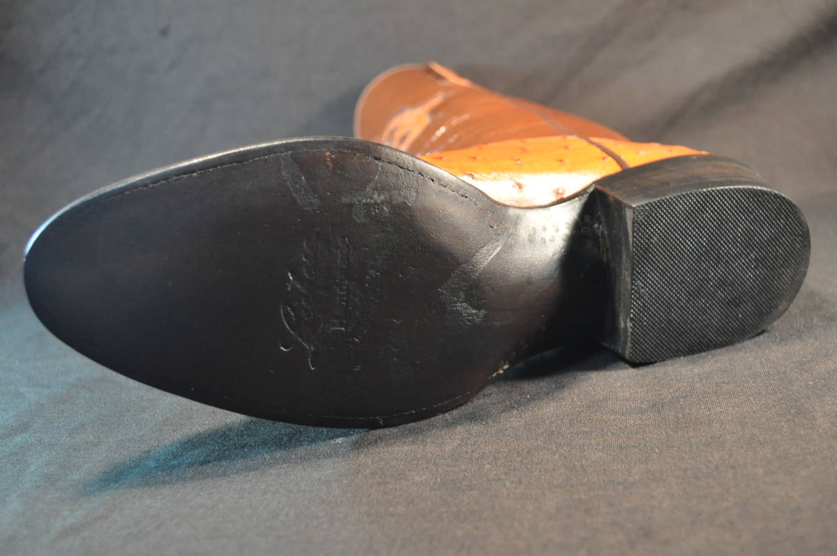 アメリカウエスタンブーツ老舗ルケーシー社製 ブランド名:CLASSIC アメリカ製 新品同様の中古品の、内底を含め全て取り外し、開きの状態に 爪先の形状を変えるために、再度木型にて成形 カスタムショップにでの加工のため、材料、工程、仕上げ全てにおいて、元の製品より高級に仕上がっております。筒高31㎝ ヒール高4㎝ 入札取り消し依頼お断り ノークレームノーリターンにてお願いします。送料ゆうパック100サイズ元払い(送料金額及び発送方法についての交渉、希望指定はできかねます) 本物の価値の判る方で、USサイズご確認のうえご入札ください。以下の方は入札お断り 当方が判定:出品欄記載事項熟読しない方 日本語が正しく使えない方 日本の常識礼儀を理解しない方 状態に関して神経質な方 細かい交信確認をしないと心配な方 必要以上の情報の記載、要求をする方(特に業者) 以下の方は問答無用で落札者都合で削除:次点の落札者がいらっしゃる場合、落札後24時間以内に連絡無いまたは48時間以内にお支払い無い方。取引ナビ以外での取引を求める方。落札後に商品の質問交渉をする方(特に住所氏名を名乗らずにする)。初交信で連絡先を記載されない方。出品覧に明記してあるにも関わらず送料、合計金額の確認を求める方。評価の悪い方。評価欄に品位の無い文章で誹謗中傷を書いている方。その他常識礼儀に欠ける方 落札日近くの質問、及び愚問には回答いたしません。領収書の発行はしません。発送番号通知は致しません。(遅延事故の際はこの限りではありません。)