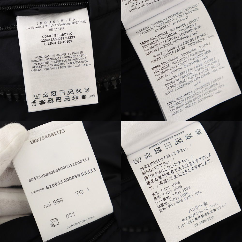 モンクレール MONCLER ダウンジャケット オダート G20911A00059 サイズ1 ブラック メンズ 中古AB 274709
