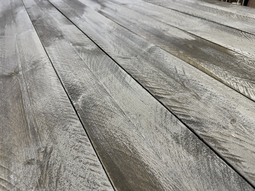 ・原木から製材したサークルソー跡を生かしてエイジング仕上した板材です。古材より入手し易く、低コストでありながら、本格的なビンテージを再現