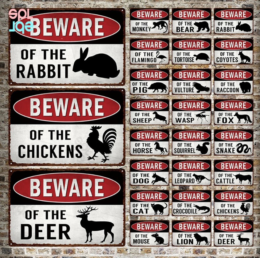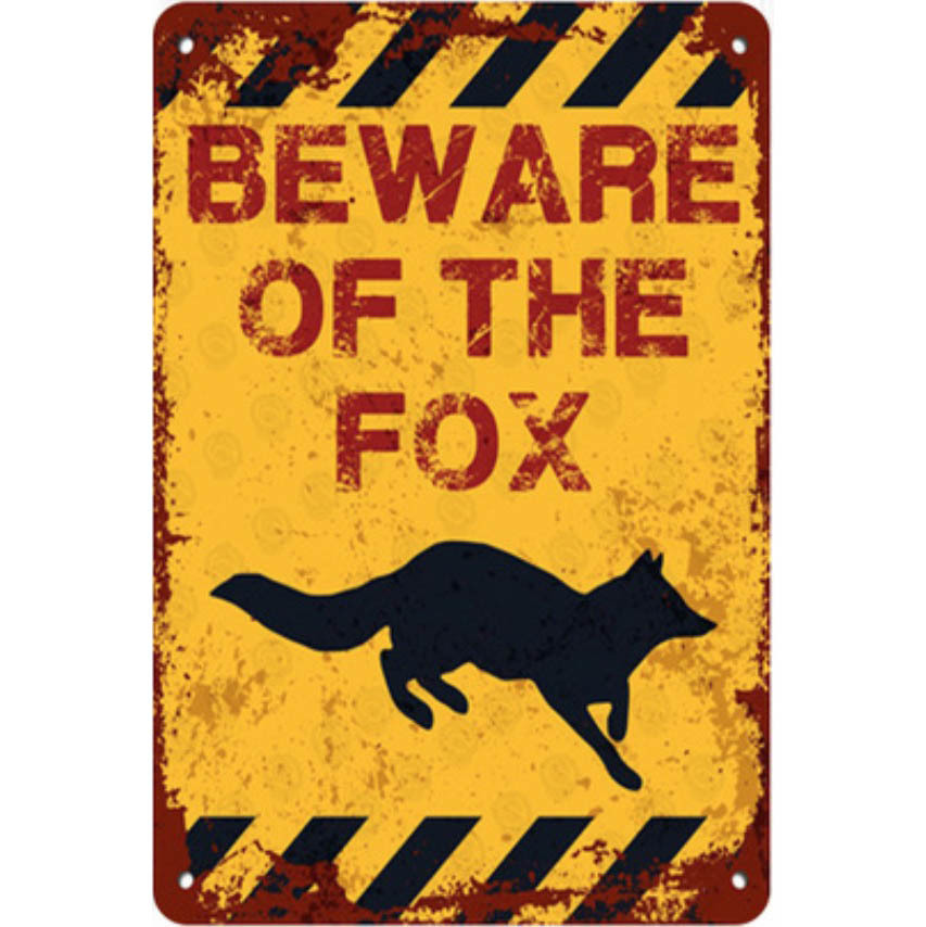 A621 メタル サイン 金属 製 ブリキ 看板 プレート 野生 動物 出没 注意 警告 危険 ペット 狐 きつね キツネ 【5875】