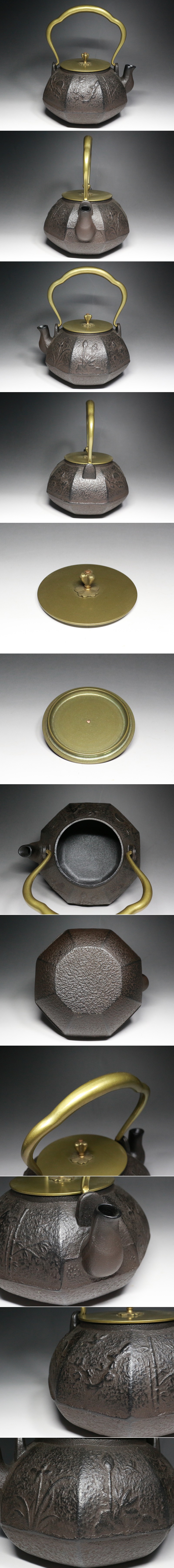 | ■鉄瓶■八角・花鳥紋・盛上彫・岩肌地・銅蓋・銅持手・鐵瓶・湯沸・茶器・煎茶道具・f777 | ||||||||||||||||||||