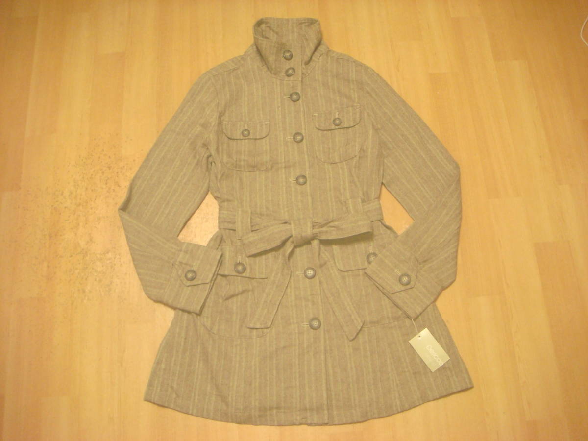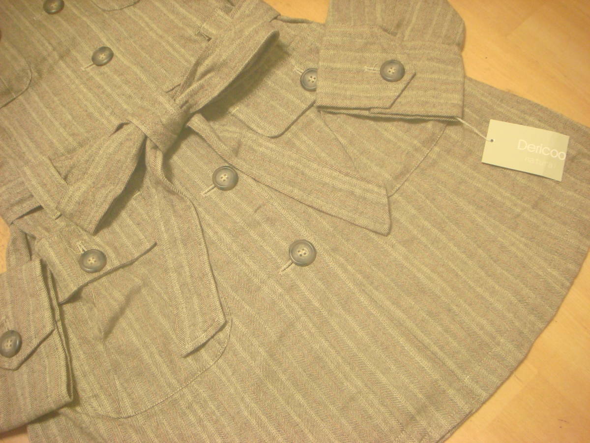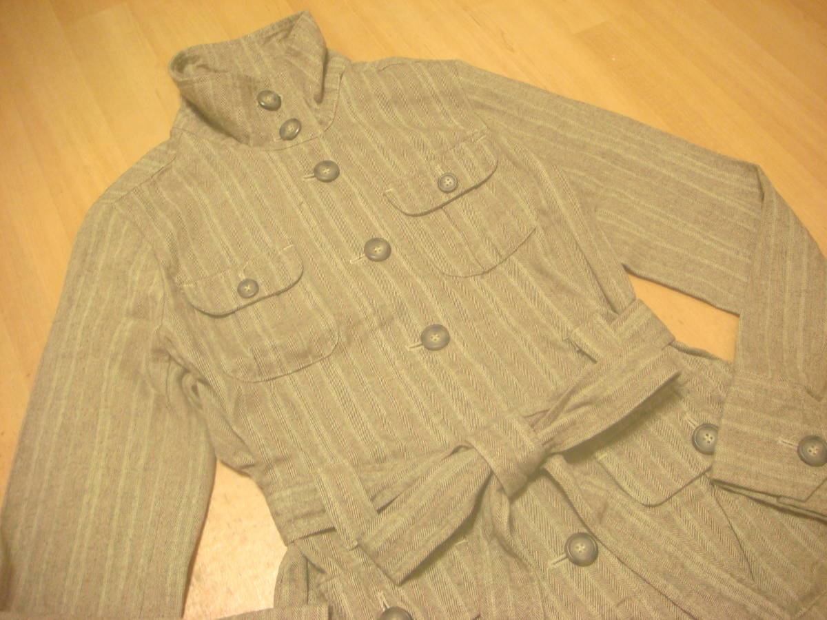 大きいサイズ ストライプ柄 リボン付き ジャケット コート 綿100% ベージュキャメル LL タグ付き未使用 新品