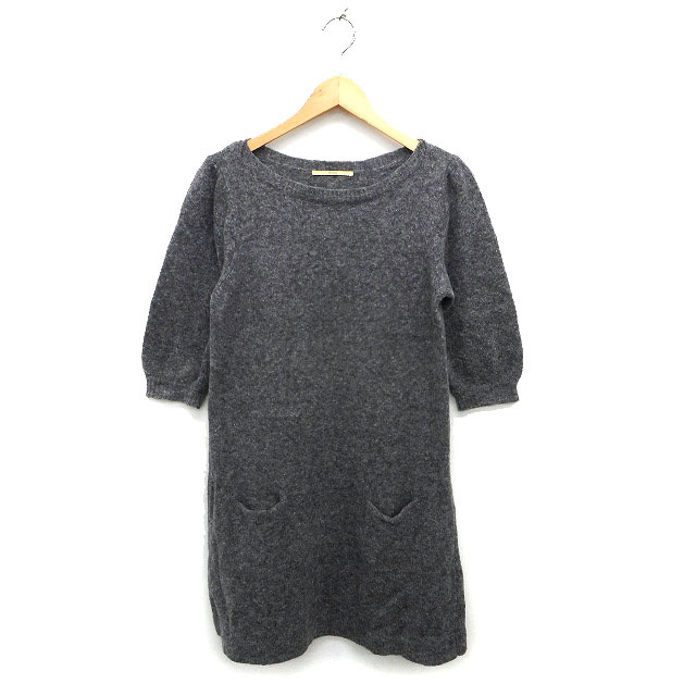 エリオポール heliopole ワンピース フレア ミニ ニット リブ ウール メランジ 七分袖 36 チャコールグレー /NT29 レディース