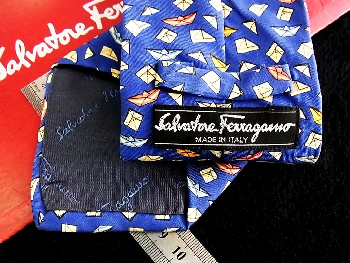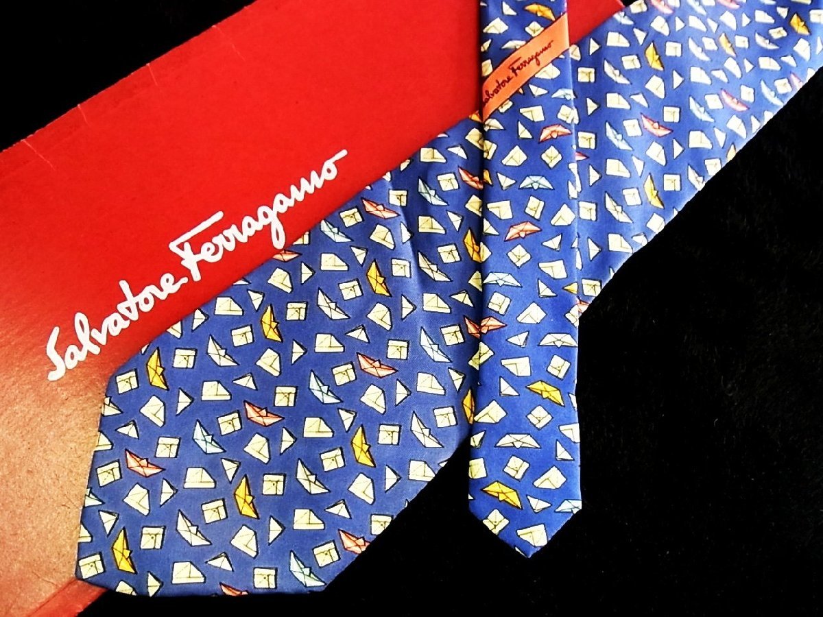 ★今週の特売★4139★高級ブランド【キャラ柄】★フェラガモ【船 ボート 折り紙 柄】ネクタイ★