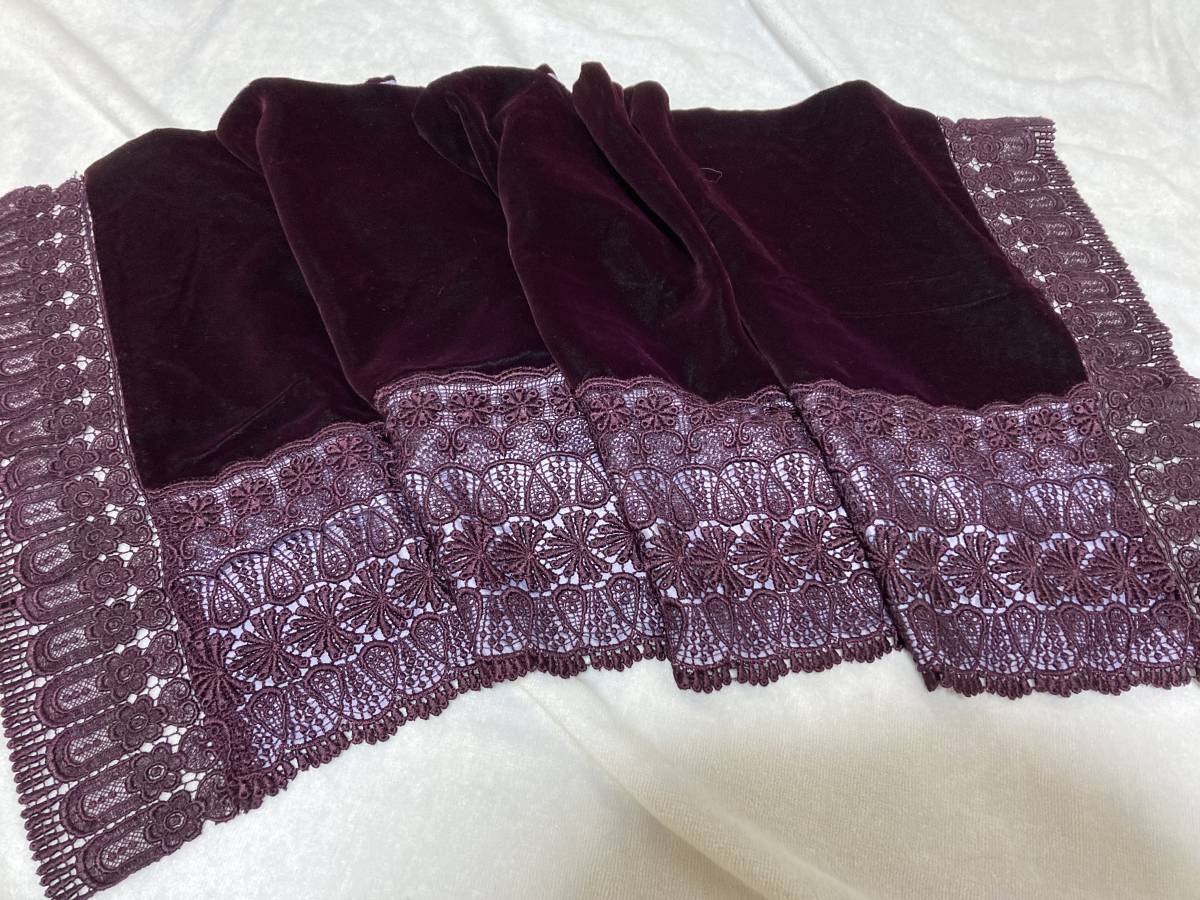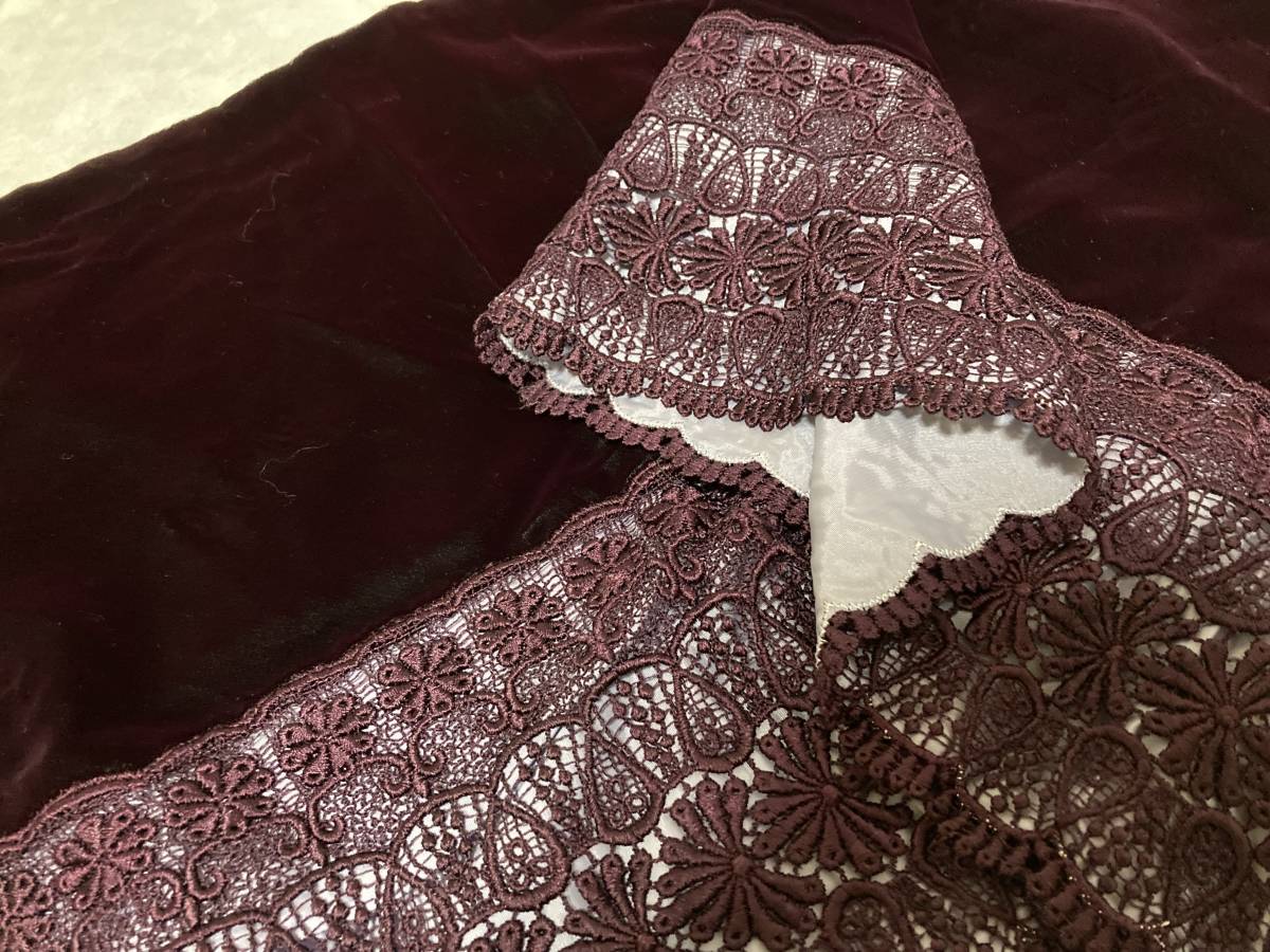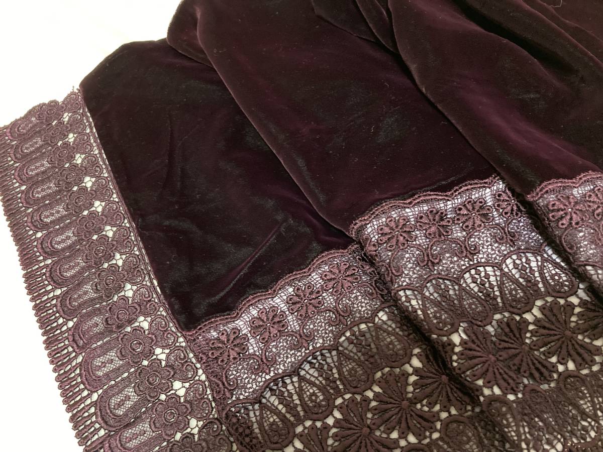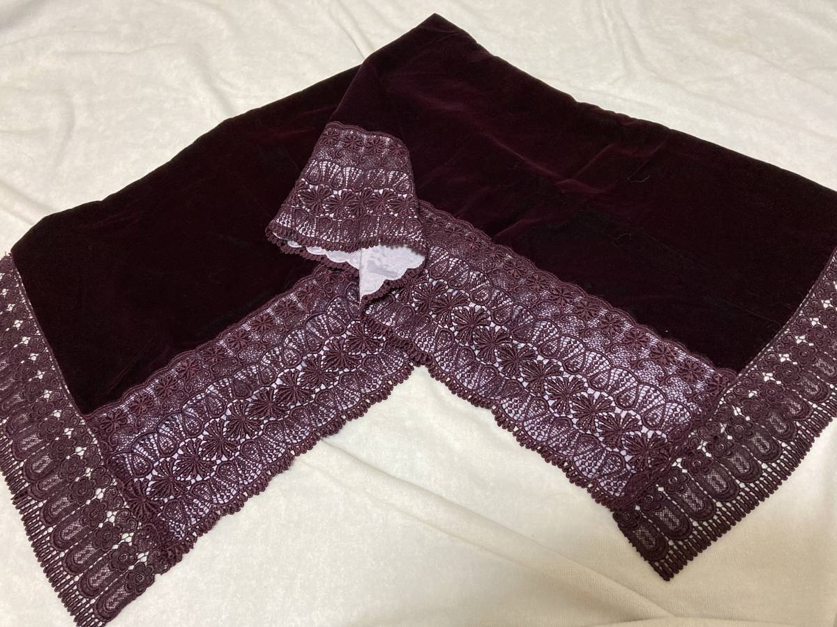 とても素敵な、シルク製ベルベット・レース使いショール(全体:約140×43cm) 、未使用ですが新品ではありませんので詳細はご了承ください。お気に召した方はいかがですか?