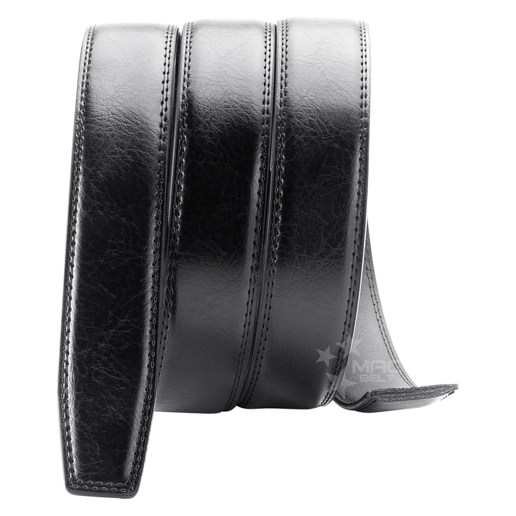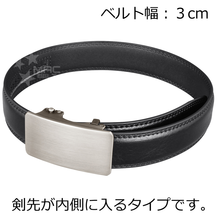 サイズ調整はいつでもワンタッチで自由自在。快適レザーベルトです。