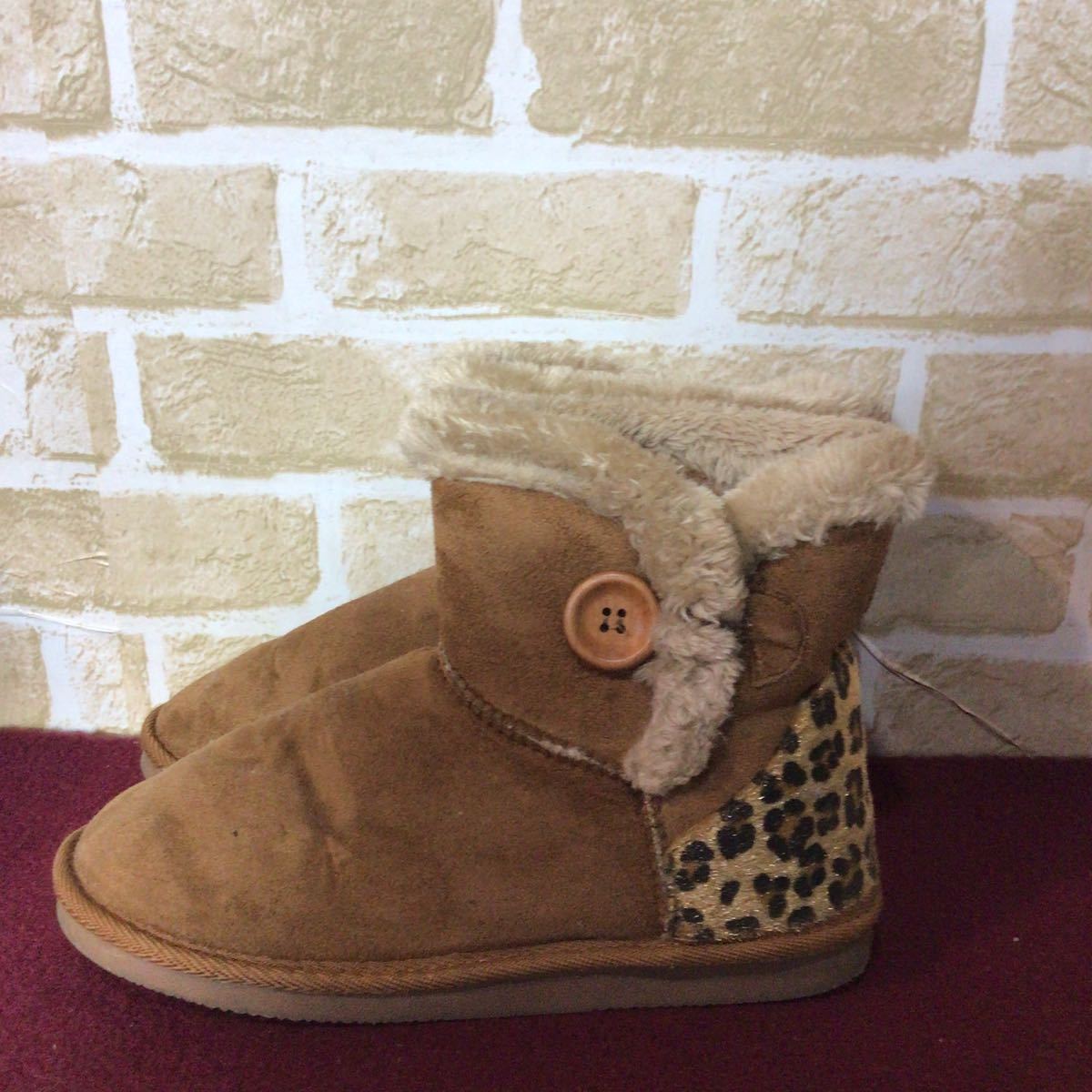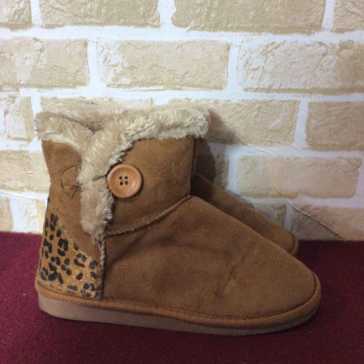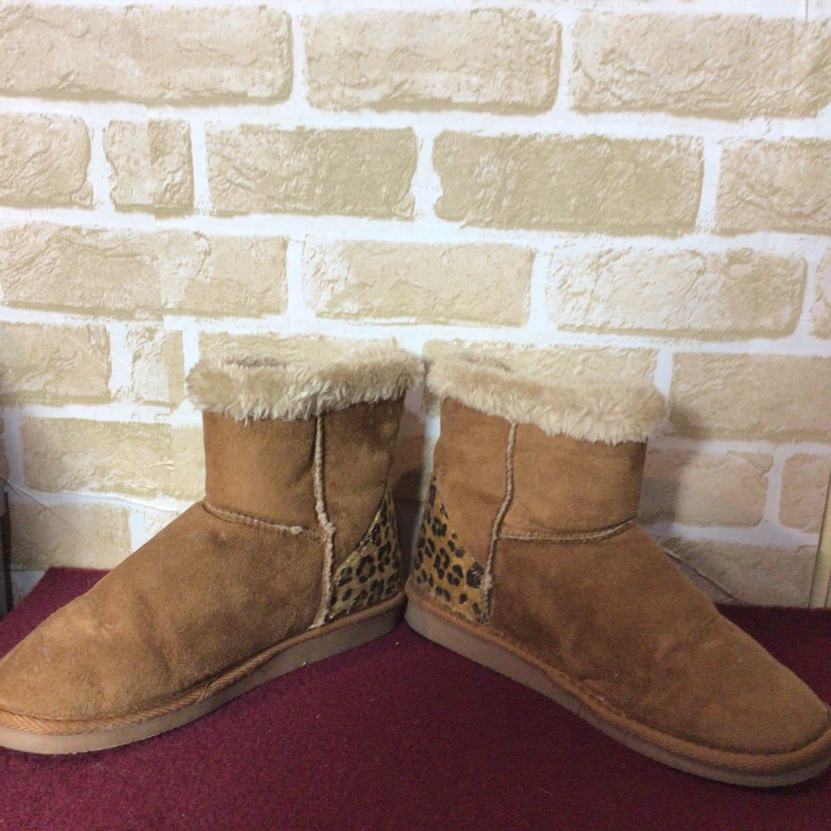 【売り切り!送料無料!】A-210 ショートブーツ!ムートンブーツ!ブラウン!キャメル!23!23.5!M!レオパード柄!かわいい!おしゃれ!中古