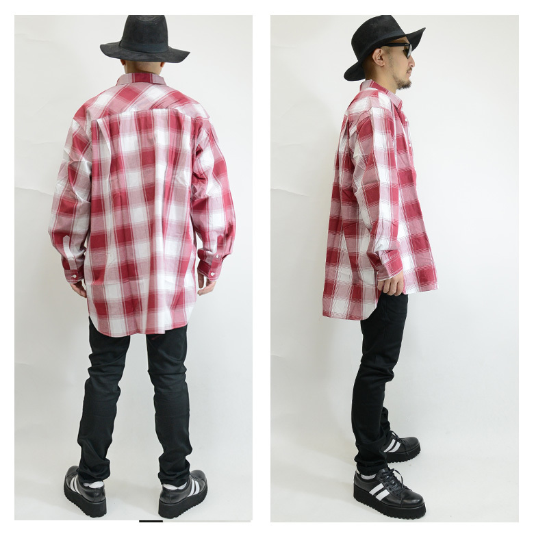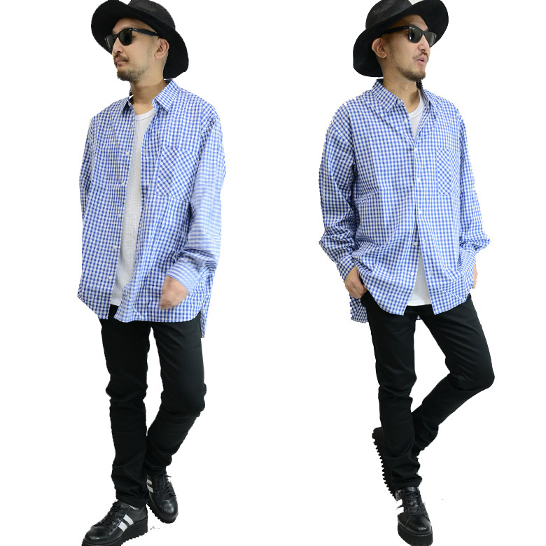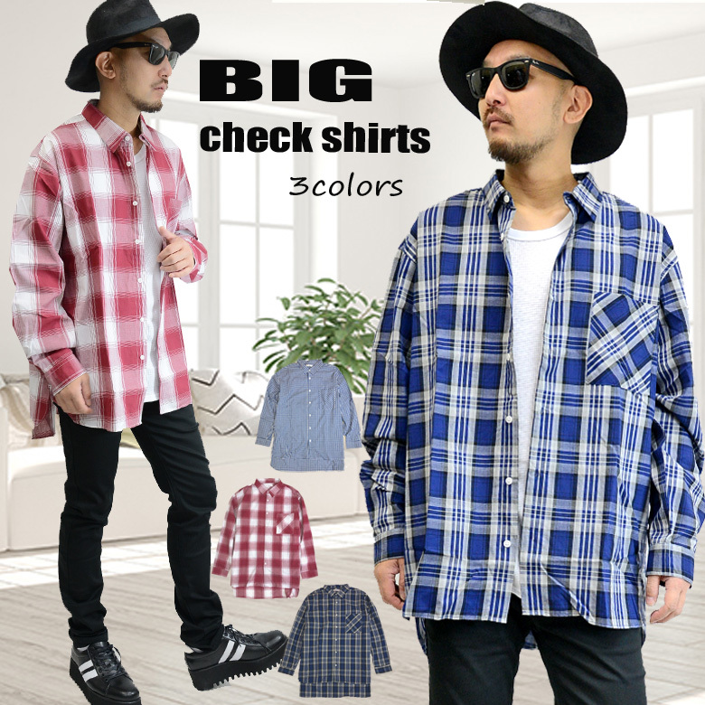 長袖シャツ/ロングシャツ/チェック柄/ビッグサイズ/オーバーサイズ/