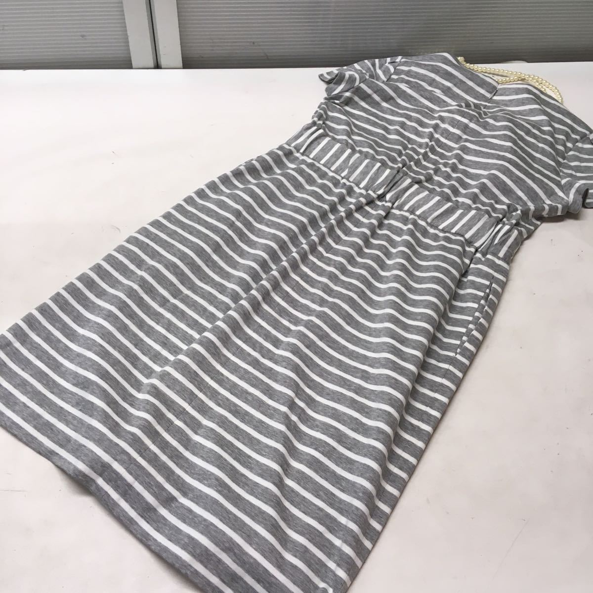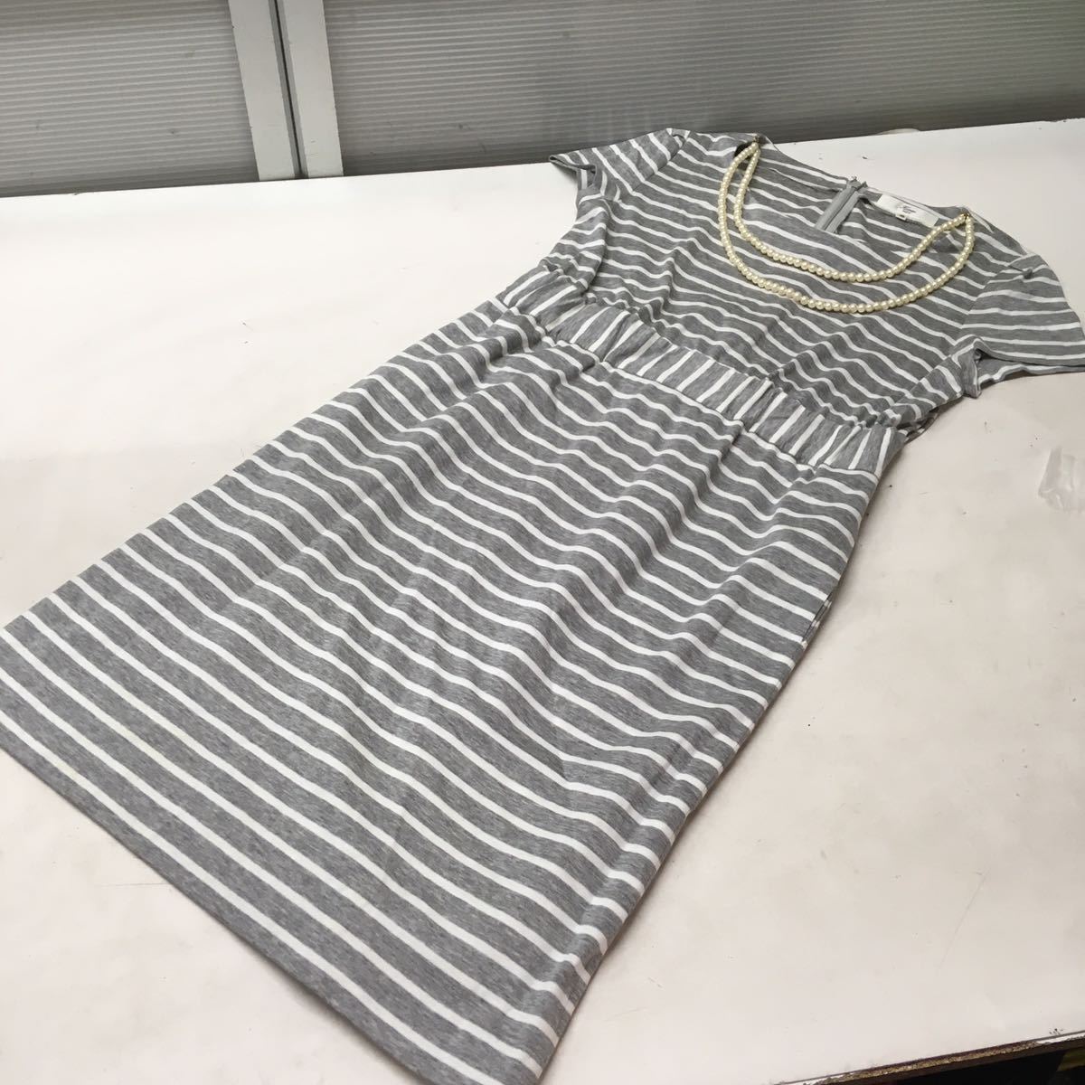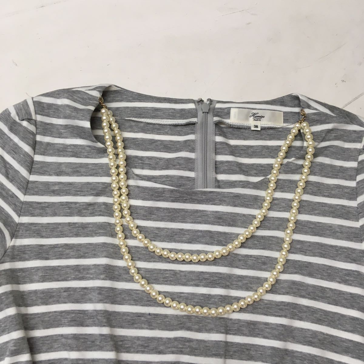 送料無料★Haniss PARIS★ドレスワンピース ボーダーワンピース パールネックレス取り外し可能 スカートワンピース★38 #51031sjj34