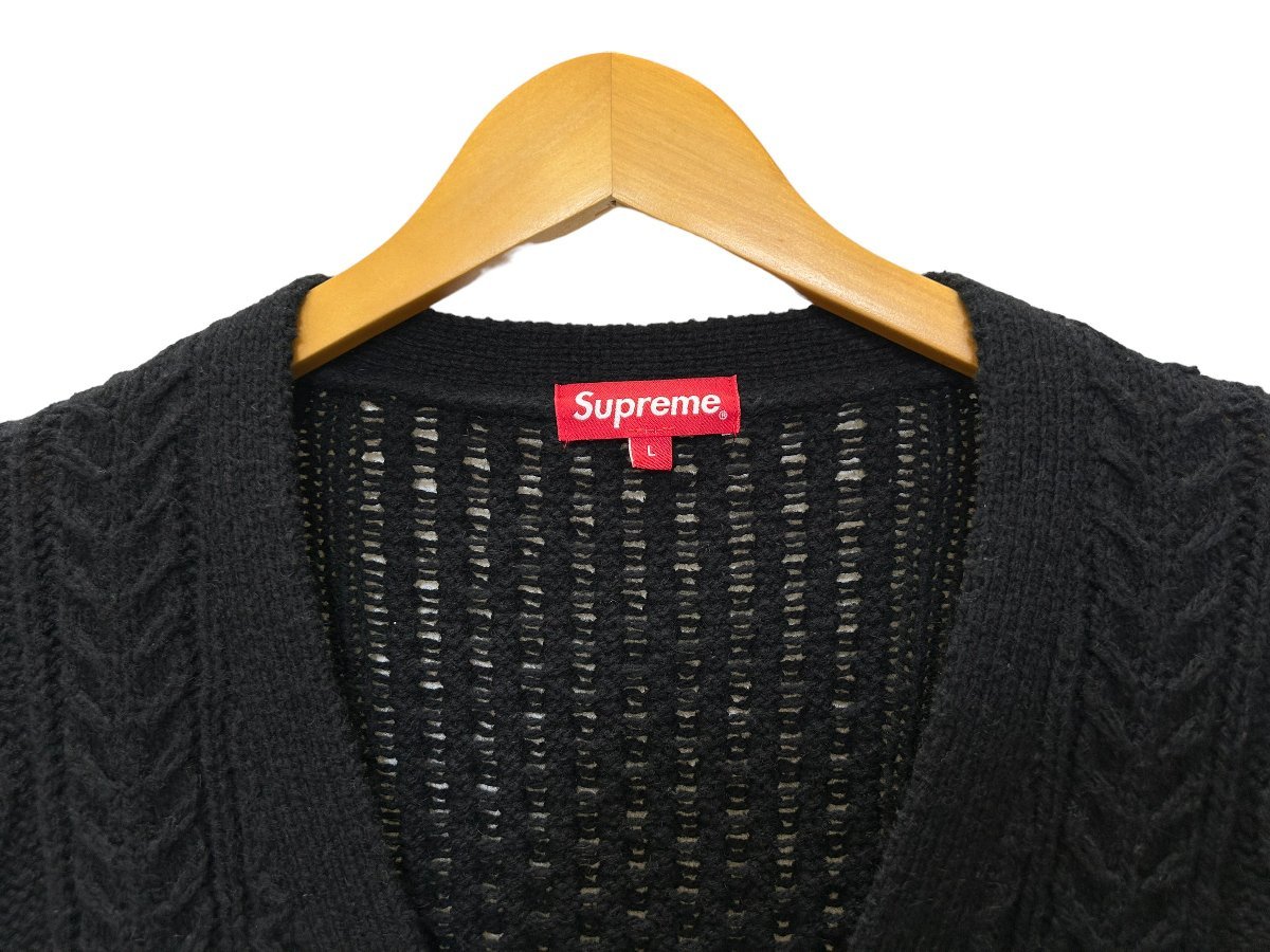 Supreme (シュプリーム) CABLE KNIT CARDIGAN ケーブルニットカーディガン ウール コットン 16AW ブラック 黒 L メンズ /027