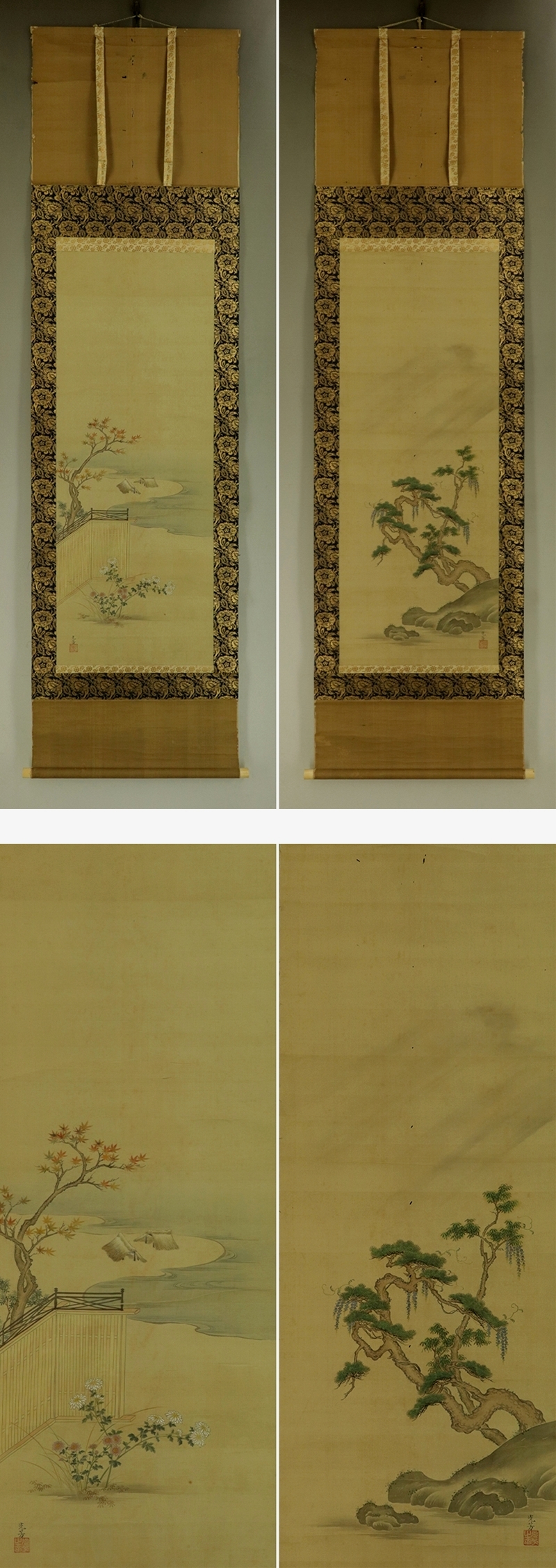 | №2306109【真作】土佐光芳【双幅・春秋山水】◆絹本◆掛軸 | |