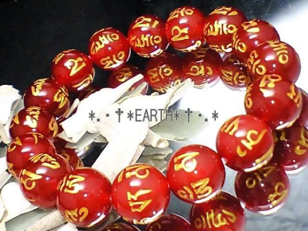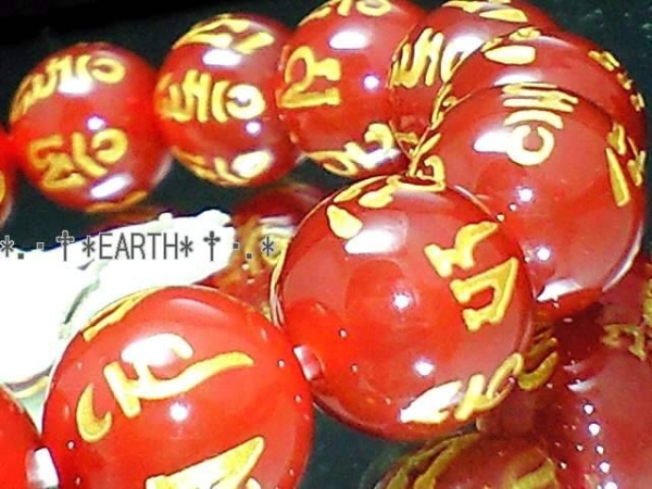 天然石★12ミリ六字真言梵字赤瑪瑙AAAレッドアゲート 数珠 | |