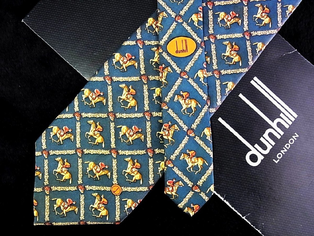 ★今週の特売★4203★高級ブランド【キャラ柄】★ダンヒル【乗馬 馬 ウマ 動物 帽子 格子 dロゴ 柄】ネクタイ★