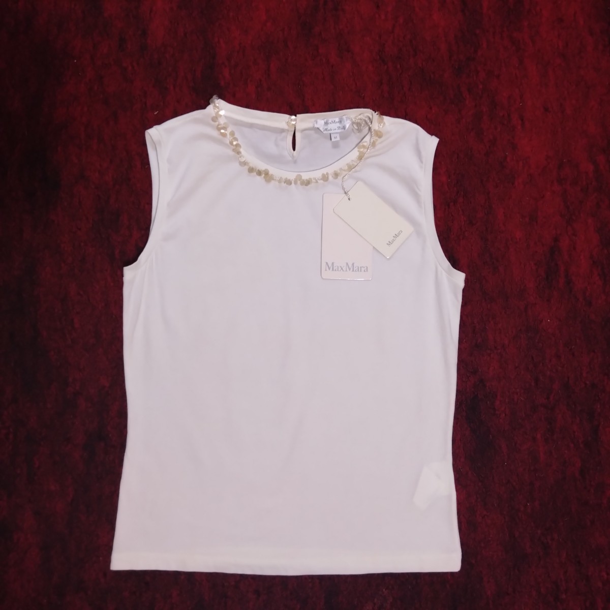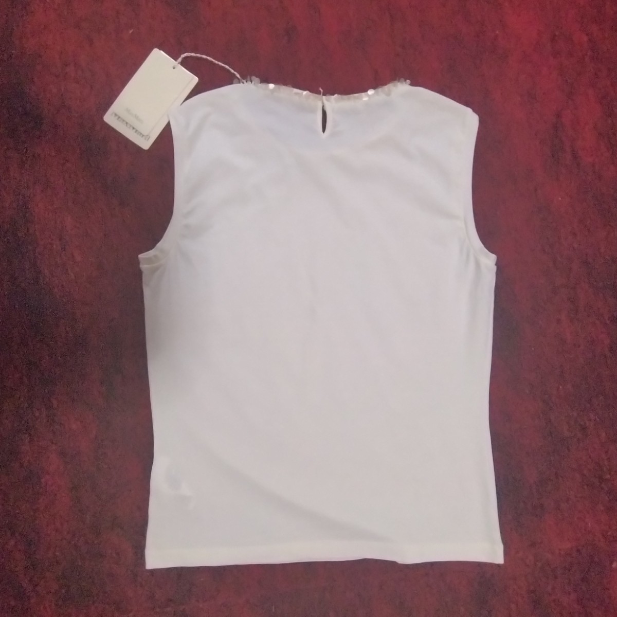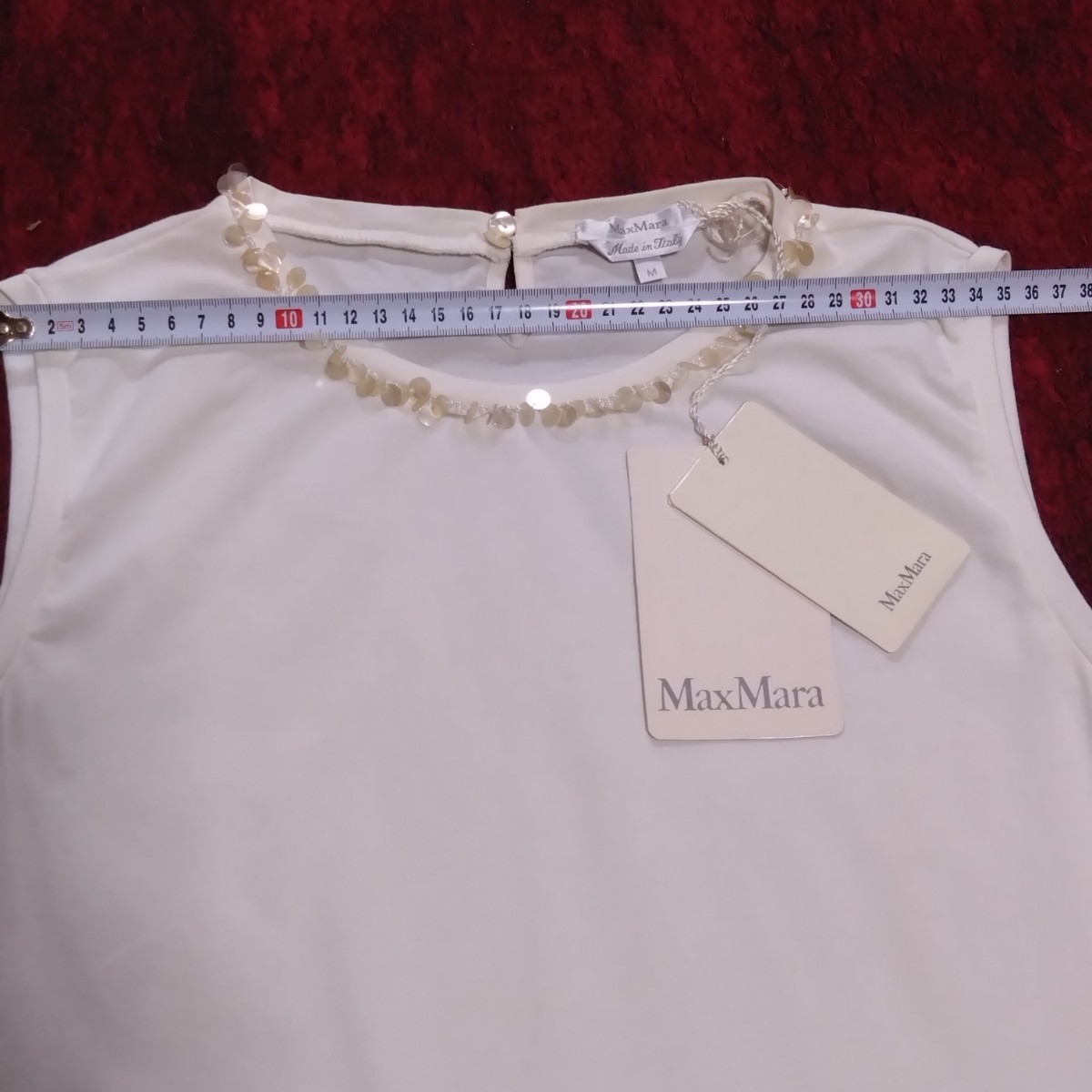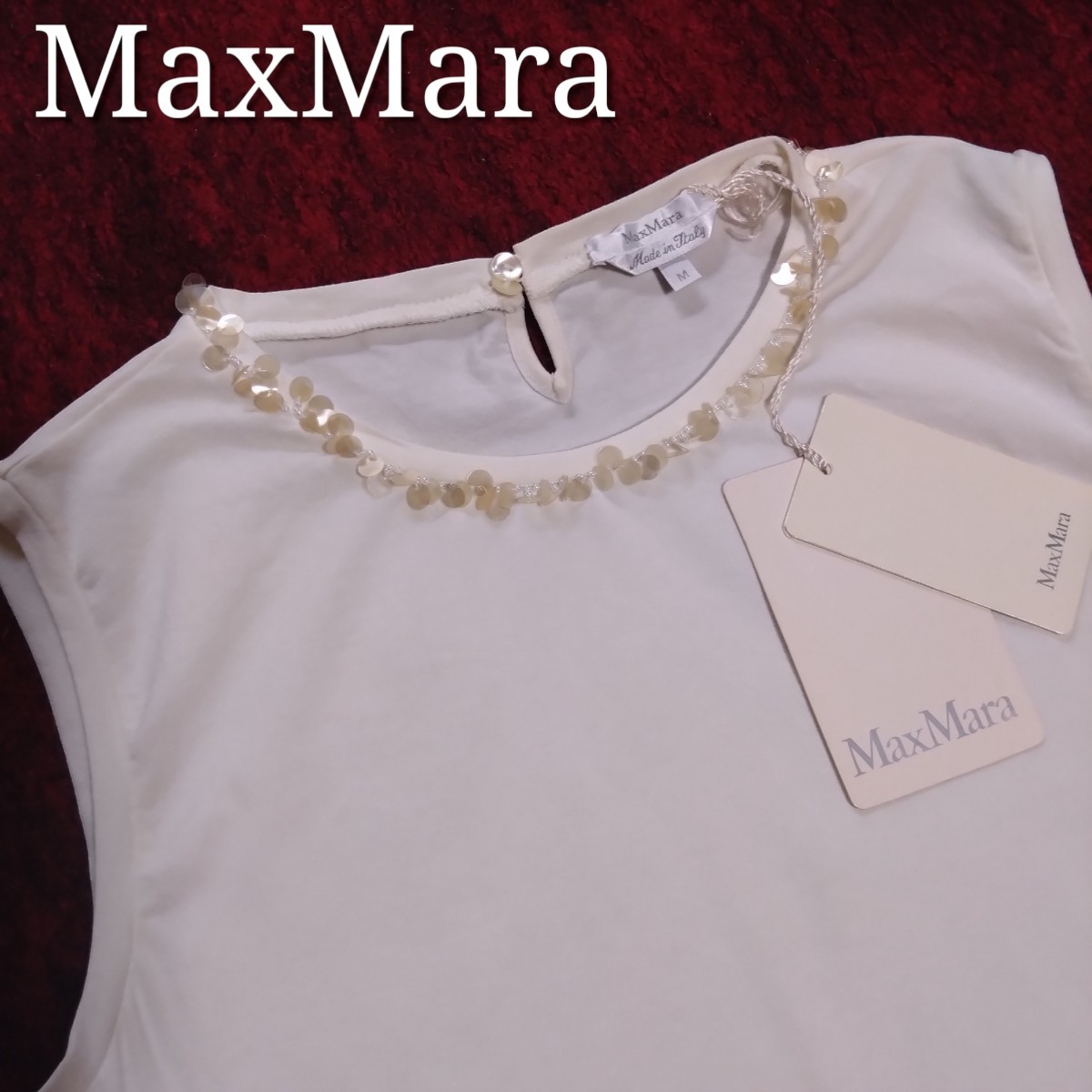 完全未使用 タグ付き 訳あり マックスマーラ ノースリーブ カットソー スパンコール ドレッシー アイボリー 伸縮有 M インナー Brandnew