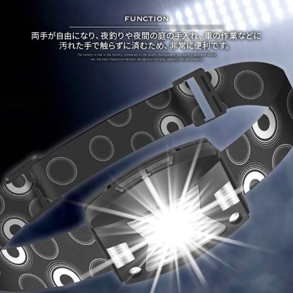 進化版XPG LEDヘッドライト 充電式ヘッドランプ センサー機能5段階調光SOS機能350ルーメンiPX67防水 52g軽量充電インジケータTYPE-C充電 黒
