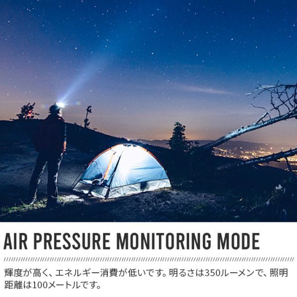 LEDライトは高輝度でありながらエネルギー消費が低い特長を持っています。明るさは350ルーメンで、照明距離は100メートルです。5つの点灯モードがあります:強→省エネ→ストロボ→赤色点灯→赤色点滅。どのモードでもセンサーを使用することができます。