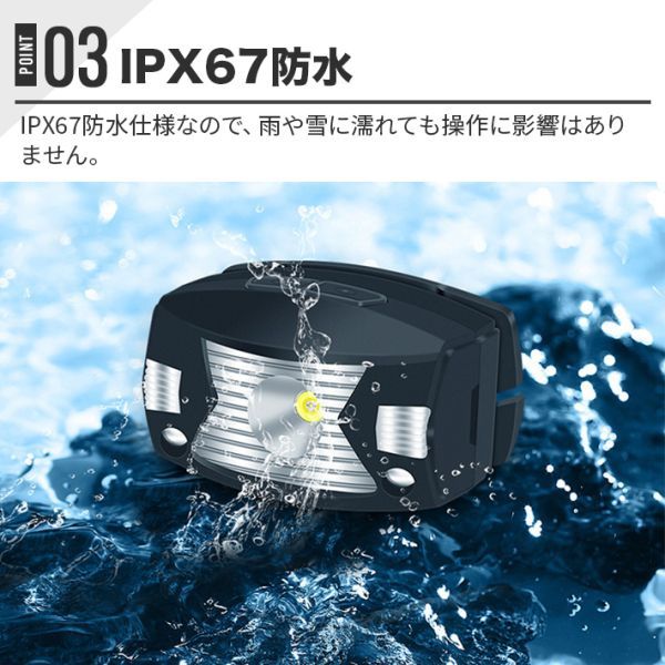 このヘッドライトは照射角度(最大60度まで)とソフトベルトの長さを調整することができます。重量は約52gと非常に軽量であり、夜釣りや登山などで長時間使用しても頭が痛くなりません。IPX67防水仕様であり、雨や雪に濡れても問題ありません。