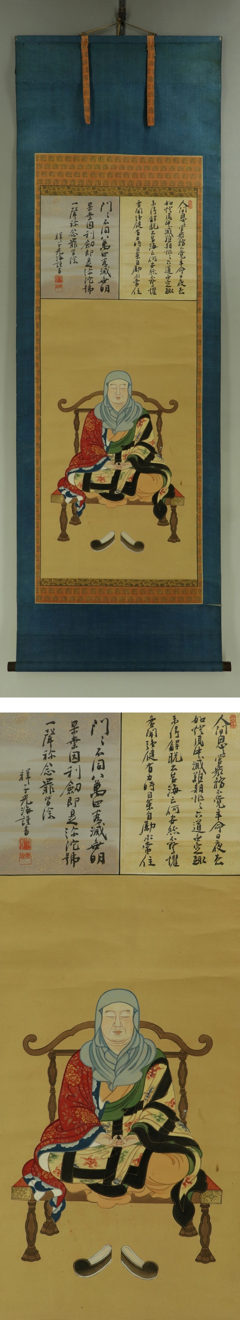 | №2308056【肉筆】古仏画【最澄像】◆紙本◆合箱◆掛軸 | |